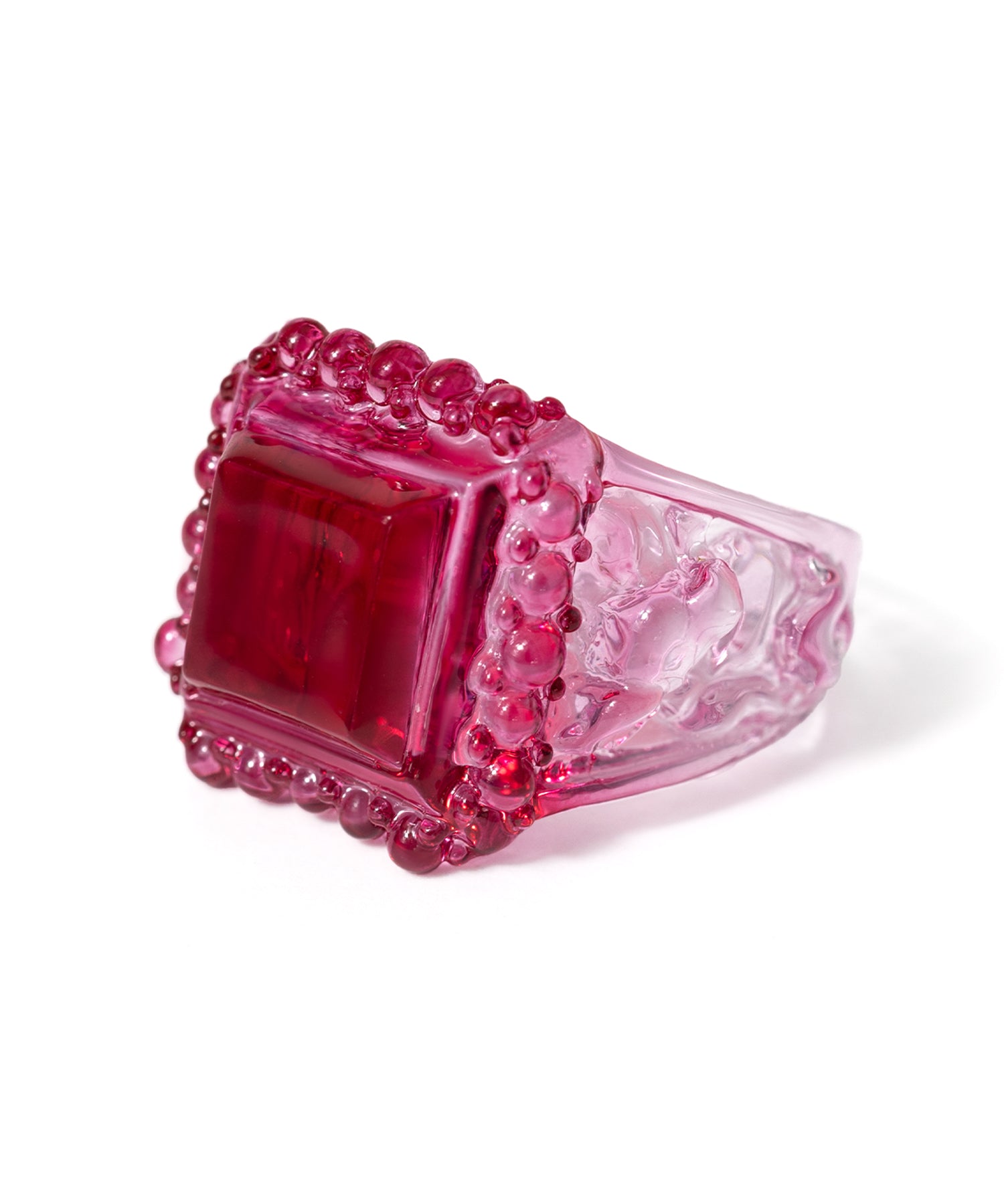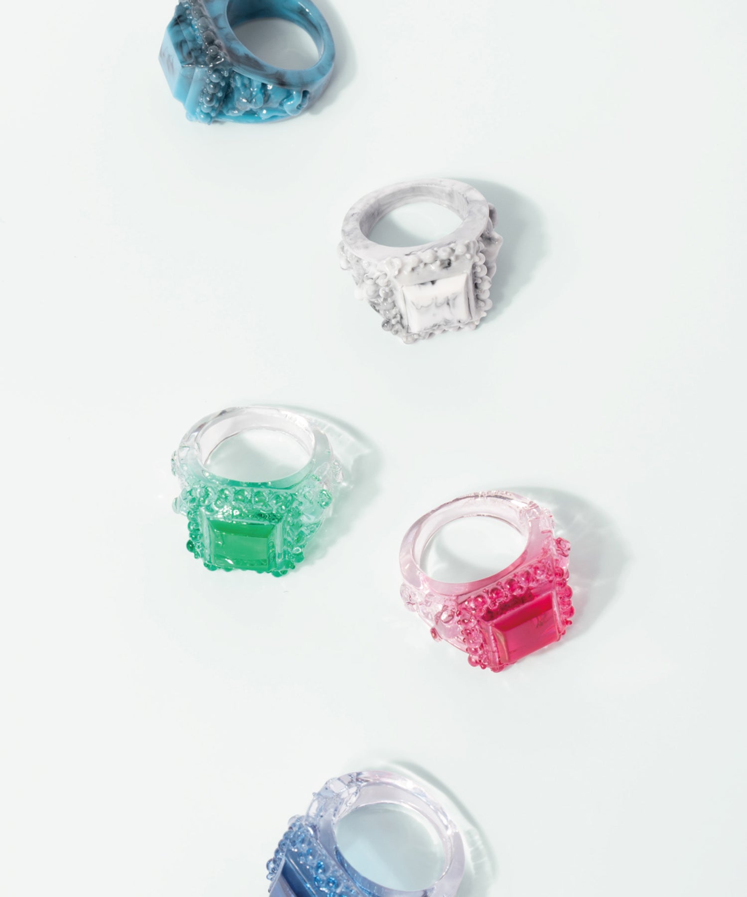 機能的なジュエリーパーツを拡張するようにデフォルメしたボリュームブレスレットや鮮やかなカラーリングが心まで染め上げるカレッジリング、人気のリボンジュエリーにはレディなムードの新色が登場します。