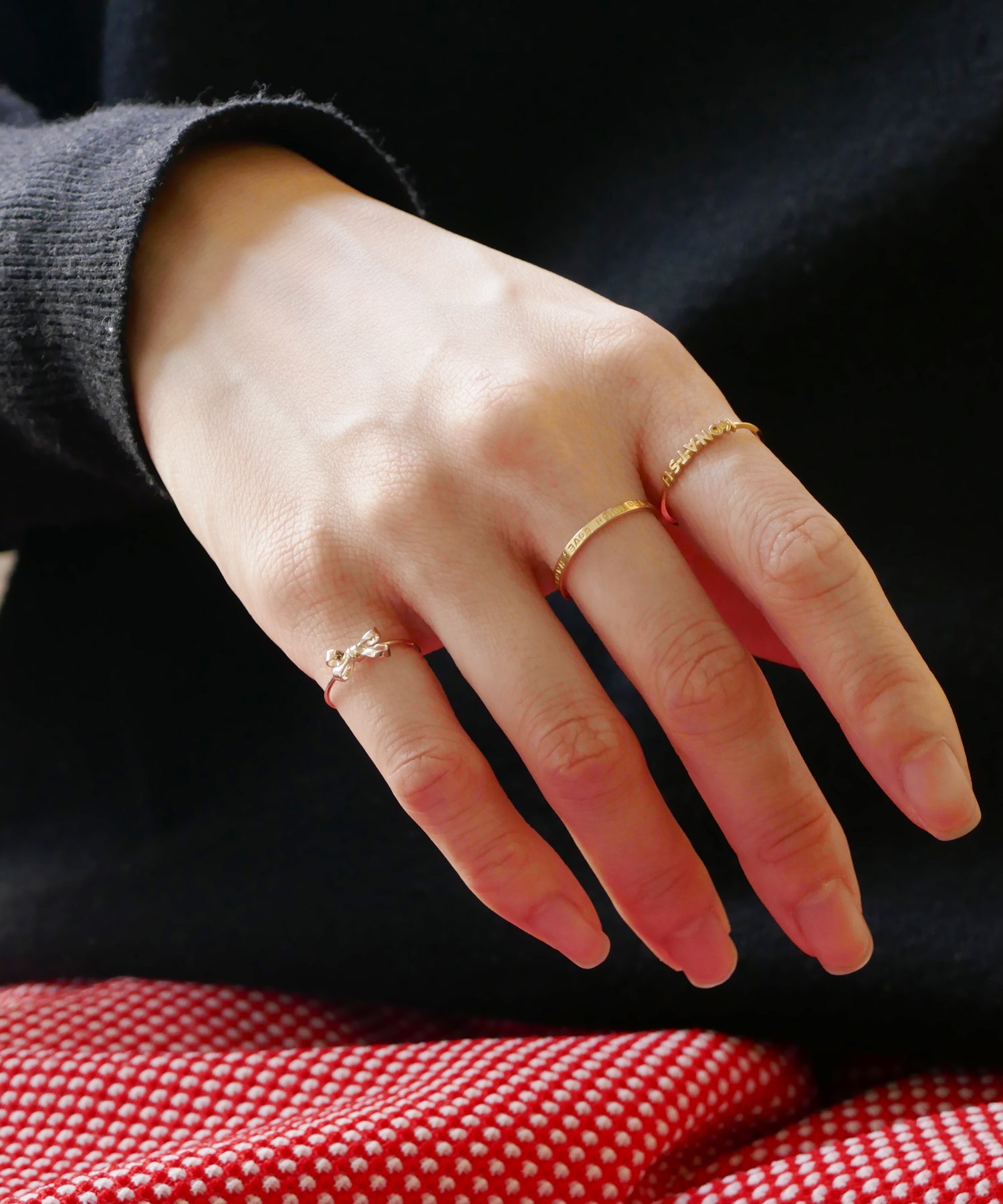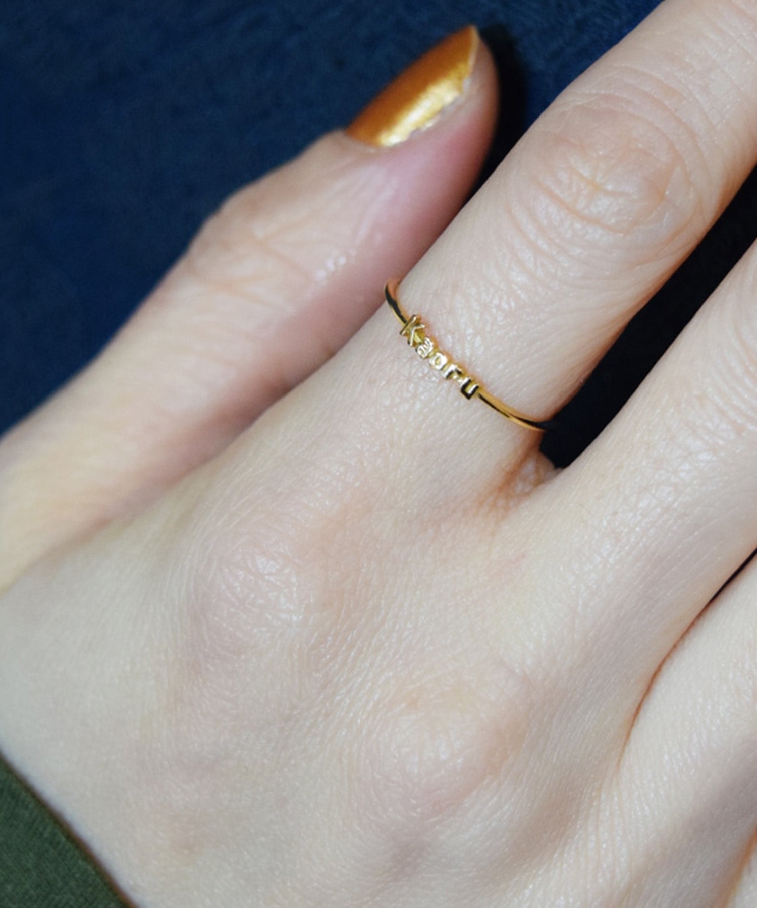 ミニマルでシンプルなブロック体のアルファベットはシンプルでさり気なく主張しすぎないデザインが魅力。重ね着けなどにもおすすめです。