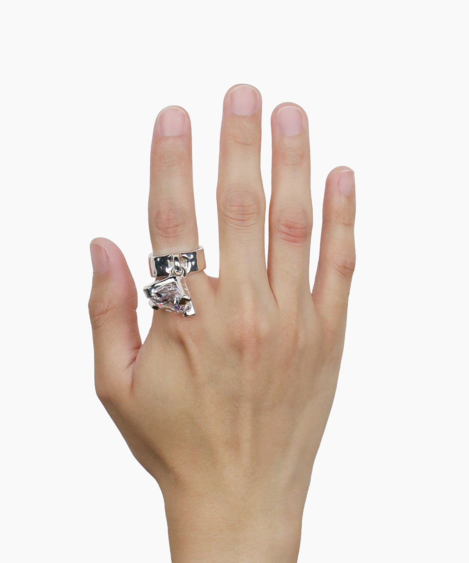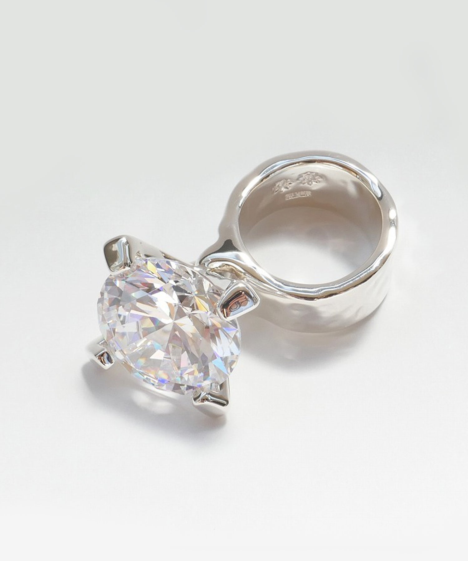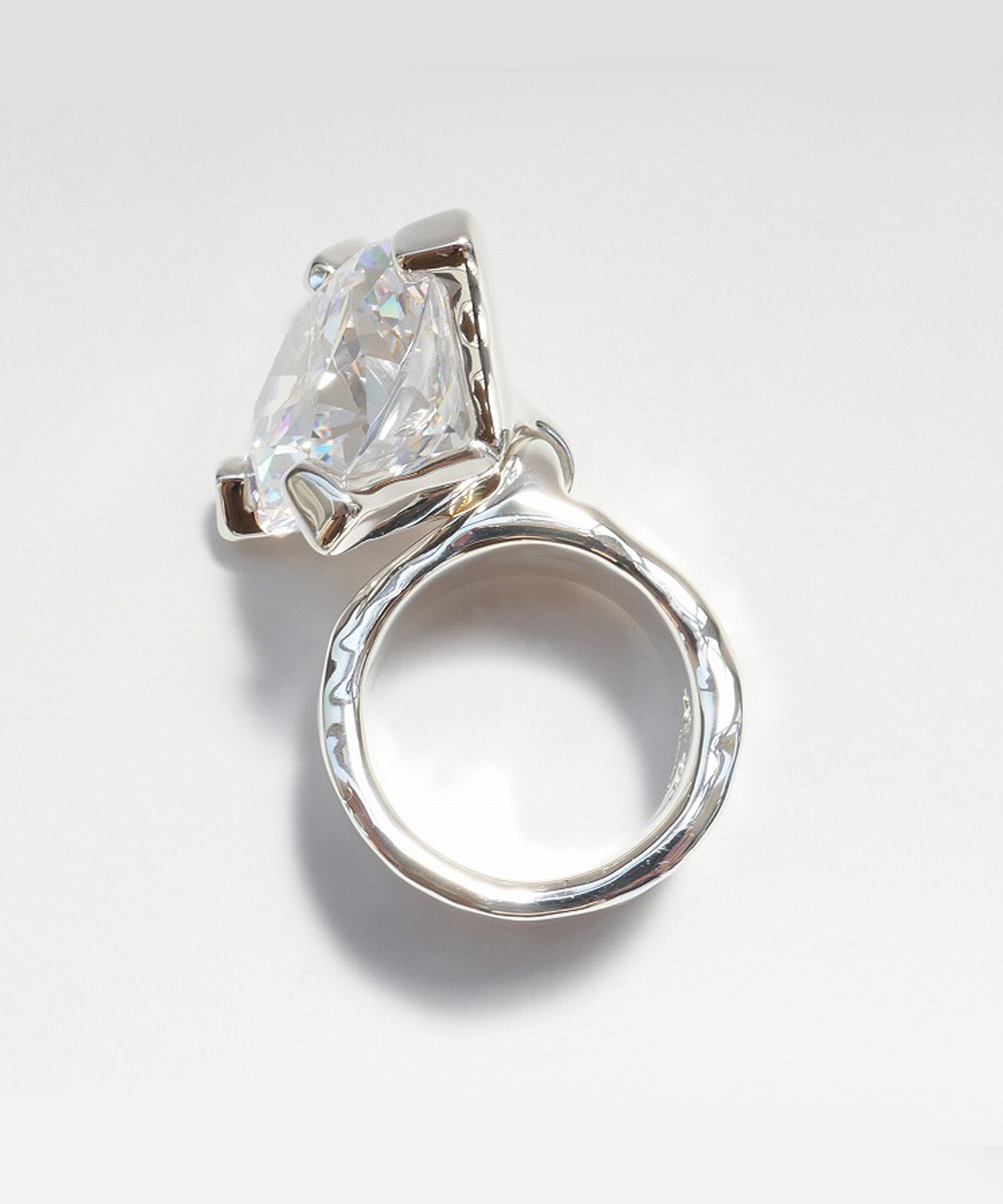 18mmのキュービックジルコニアを主役にした、輝きが美しいインパクトフルなデザイン。
