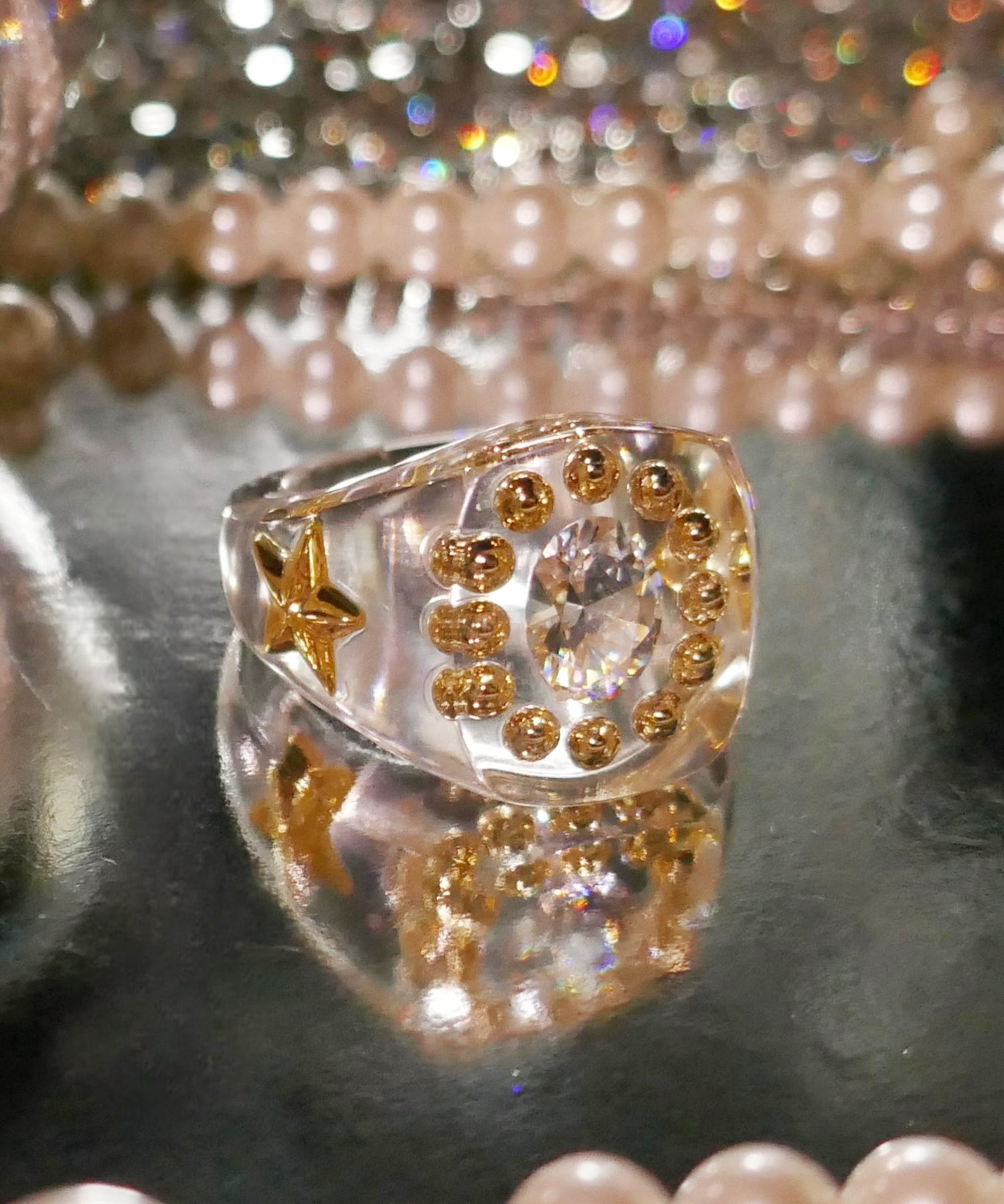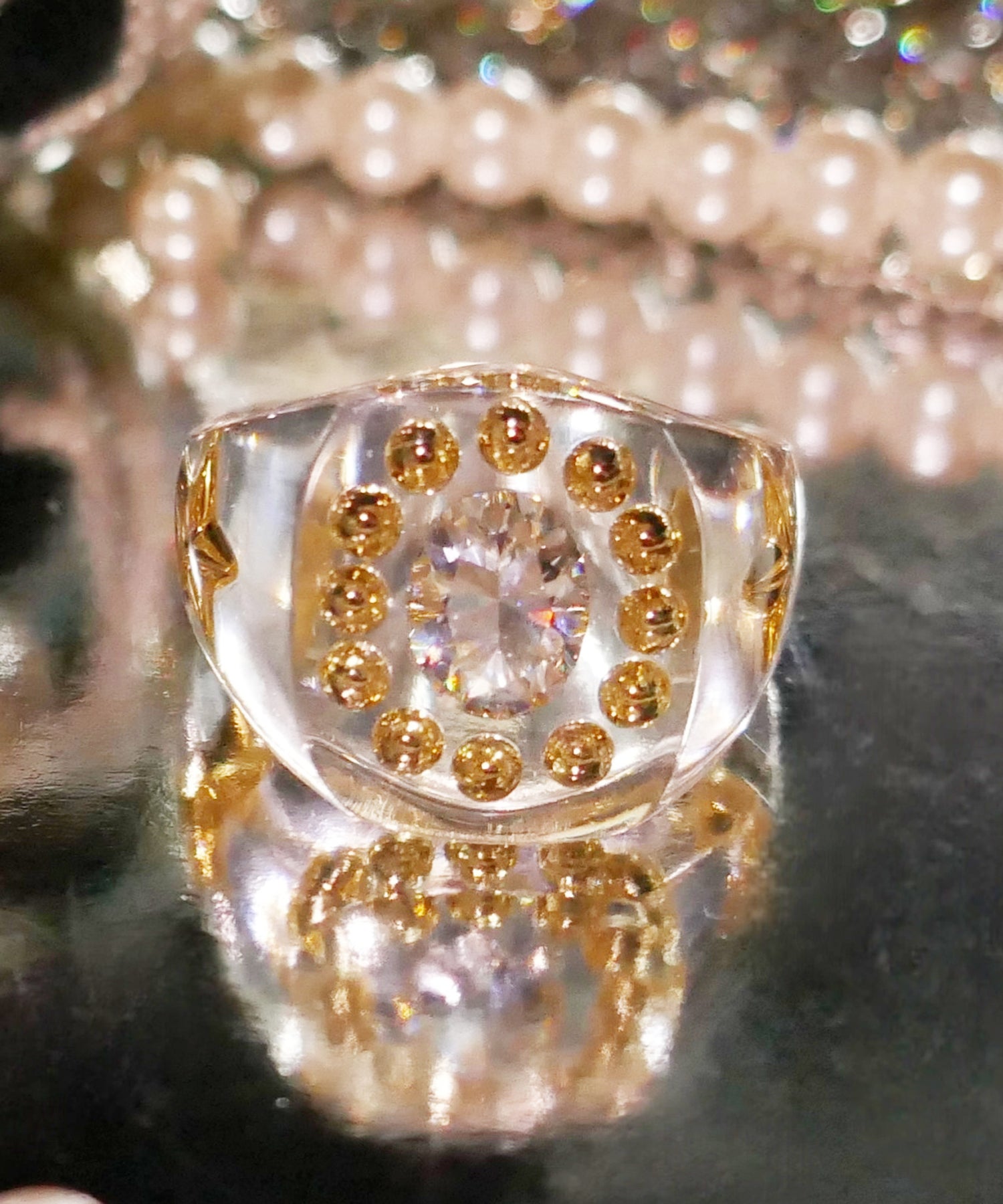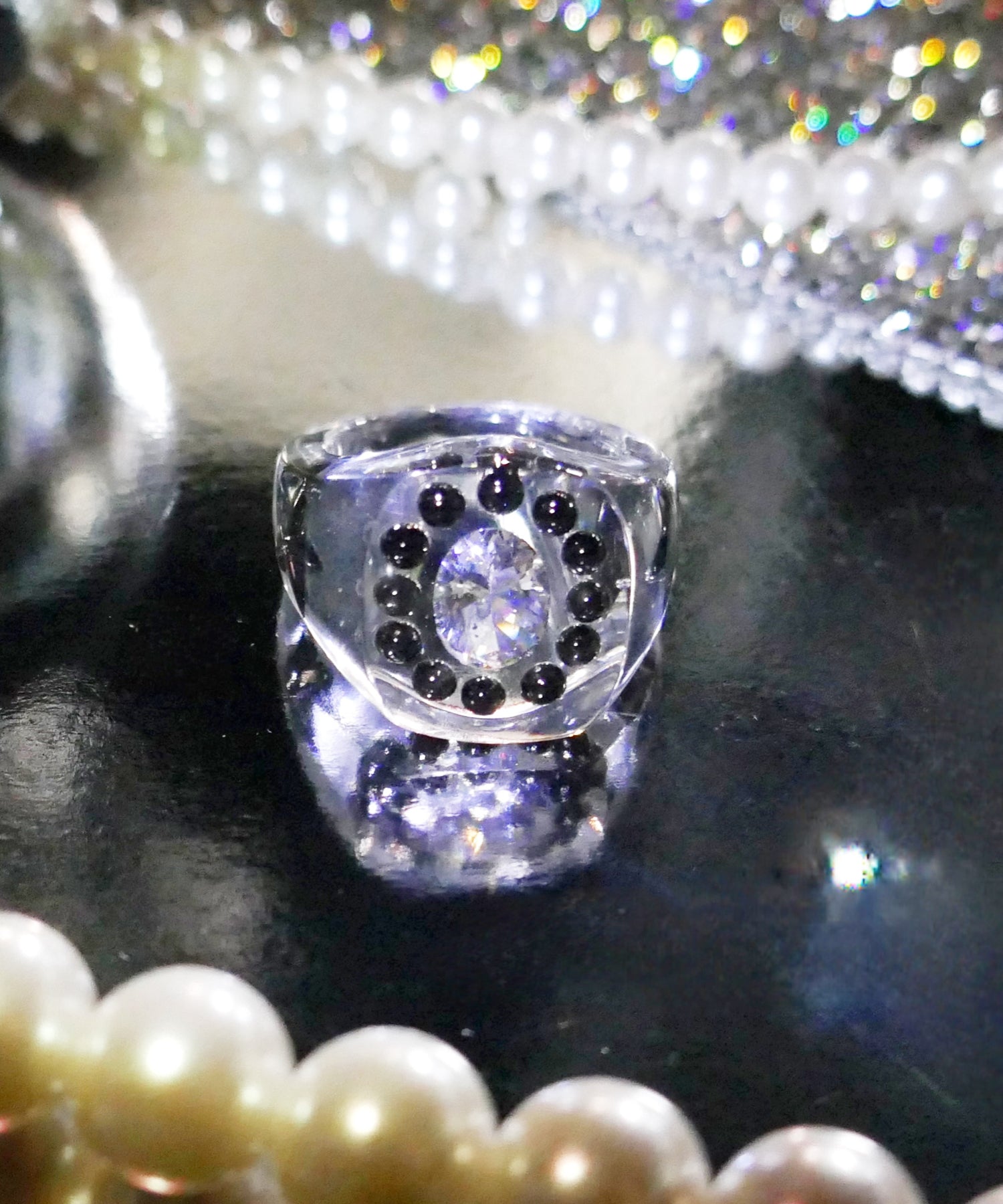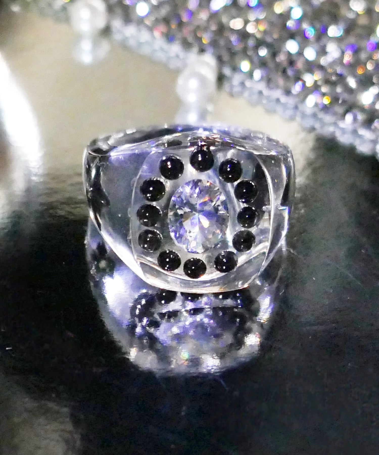 中央のキュービックジルコニアと、囲むメタルパーツが