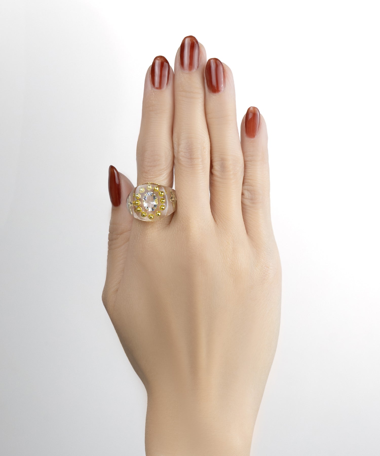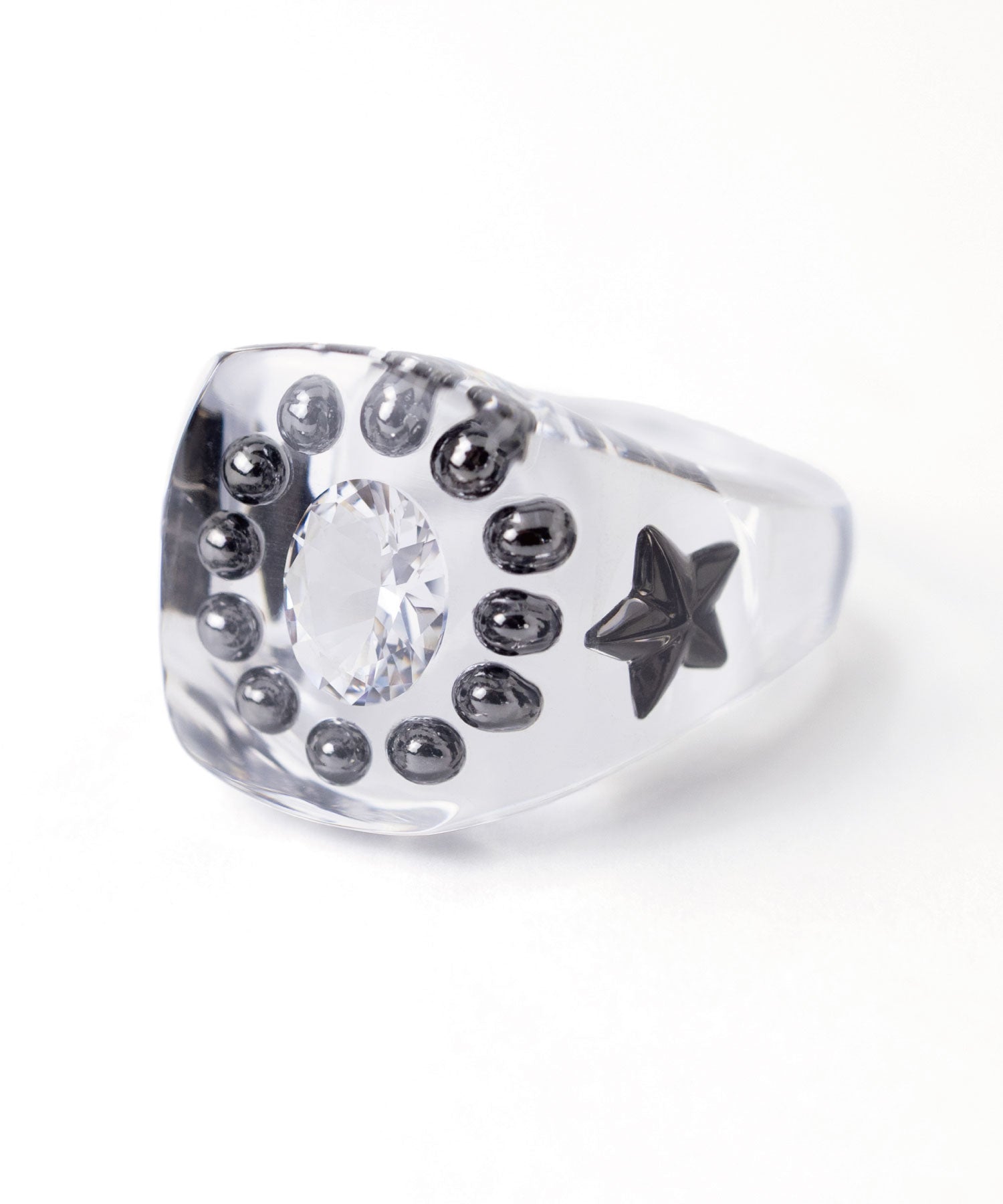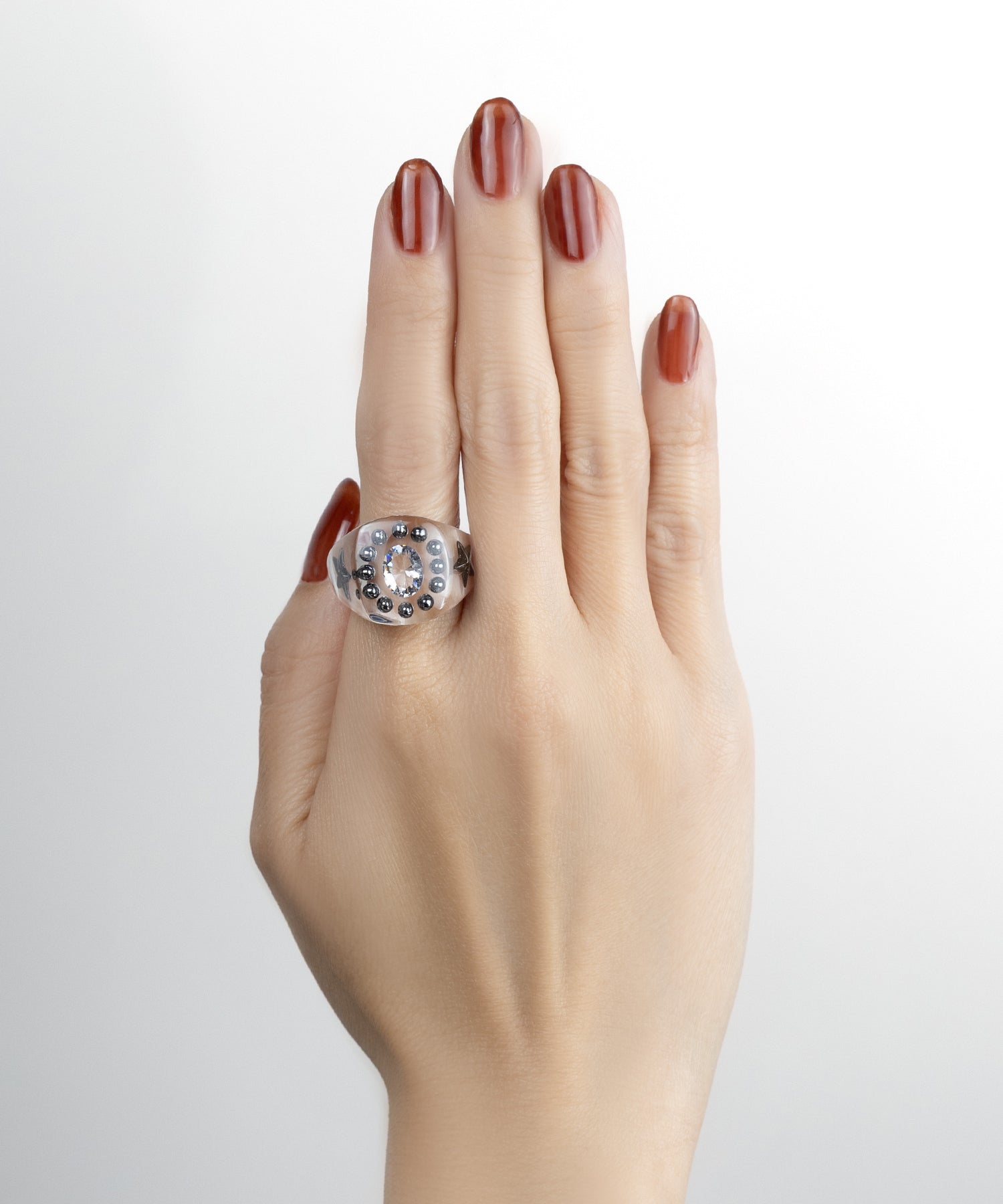 中央のキュービックジルコニアと、囲むメタルパーツが