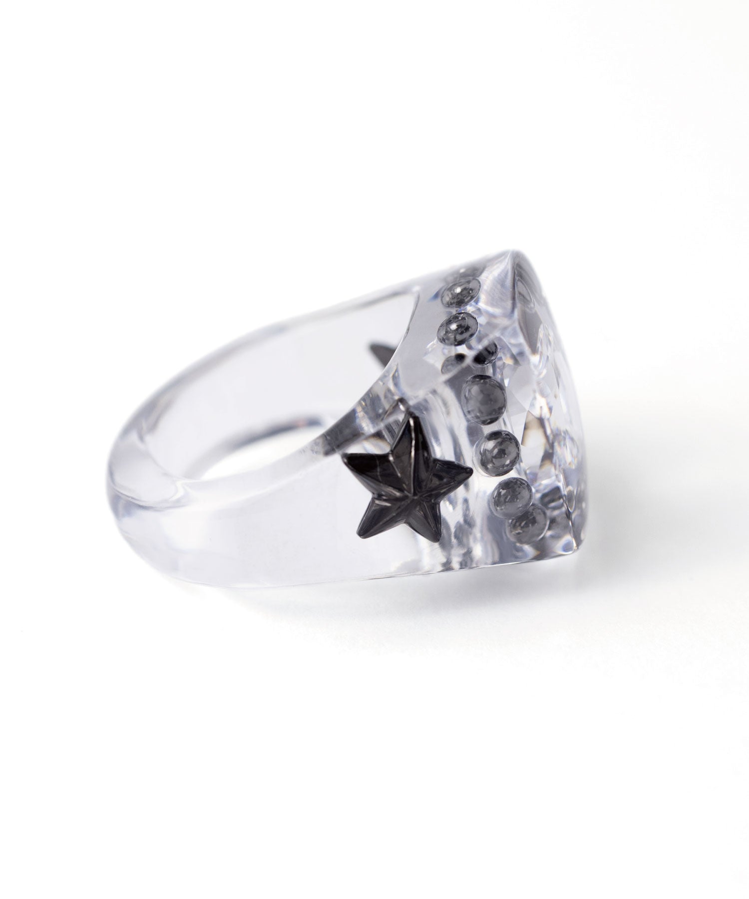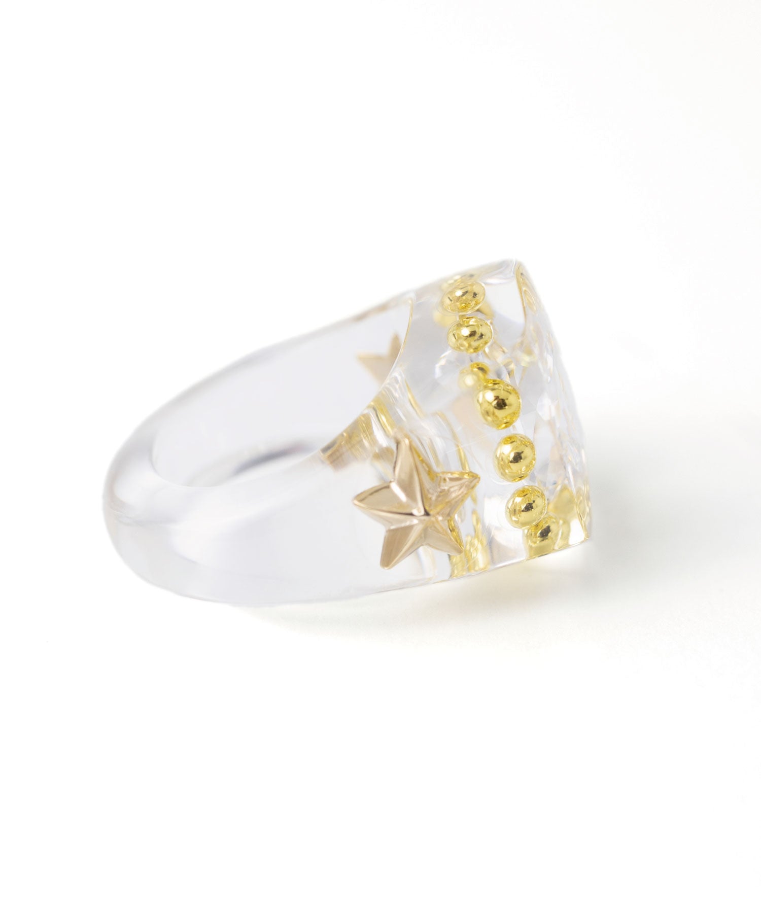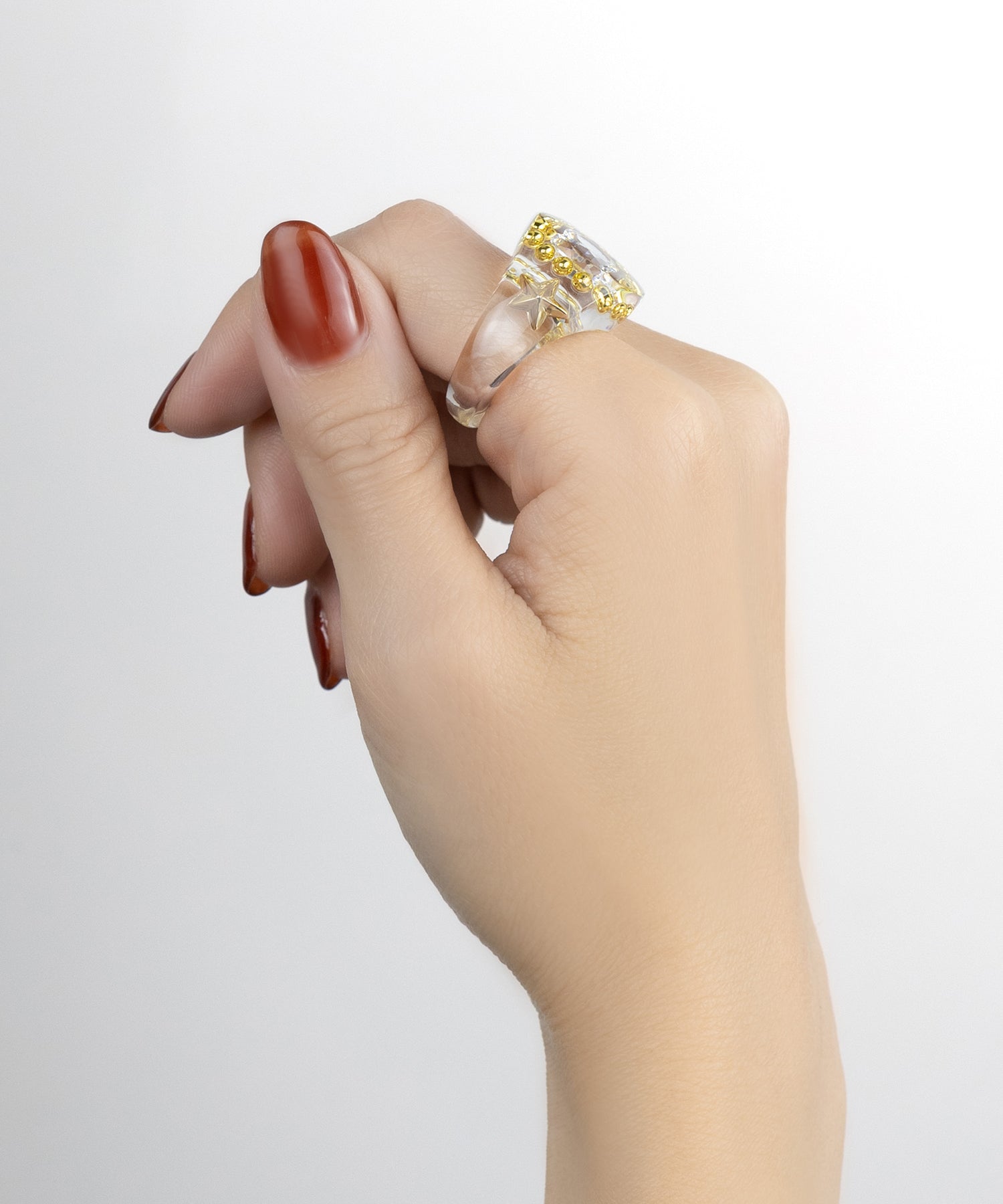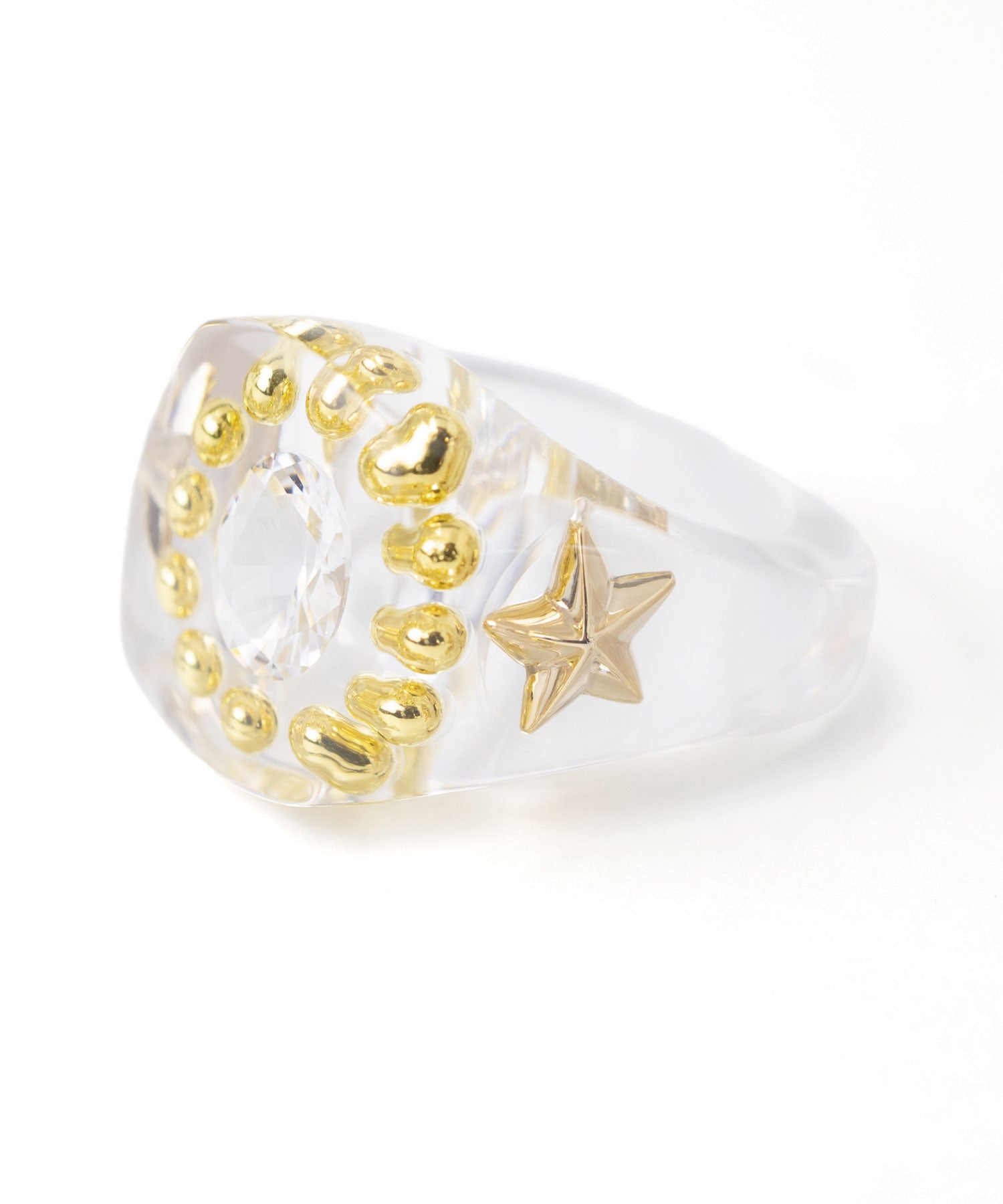 中央のキュービックジルコニアと、囲むメタルパーツが