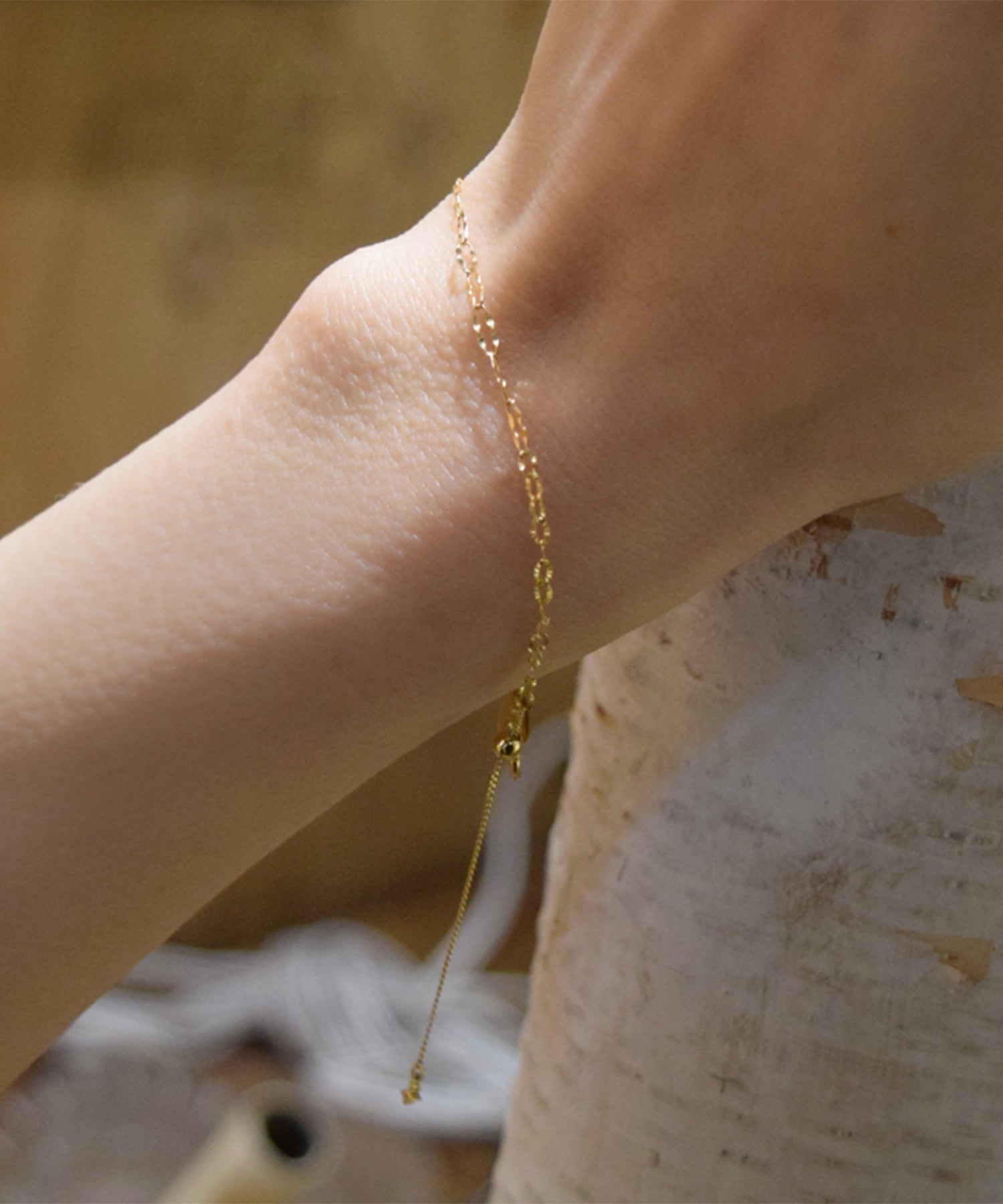 花びらのような薄いプレート状のチェーンは細やかな装飾が施されデザイン性が高くチェーンだけでも存在感があるデザインです。レースの靴下にストラップシューズを履いた時のように少しだけ背伸びした忘れていた少女のころのそんな気持ちをいつまでも。