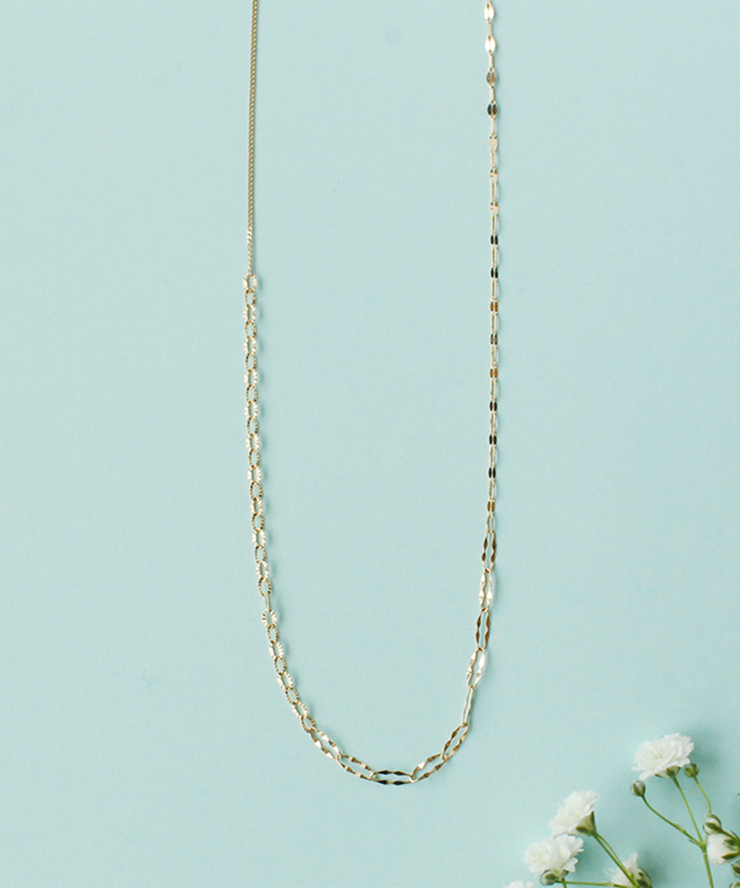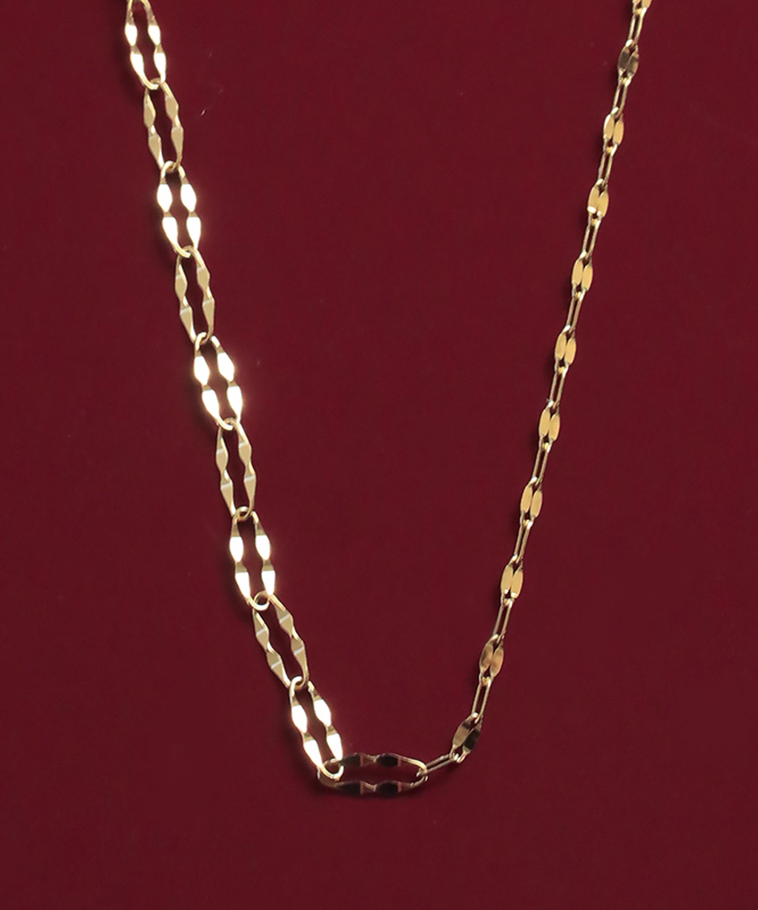 花びらのような薄いプレート状のチェーンは細やかな装飾が施されデザイン性が高くチェーンだけでも存在感があるデザインです。