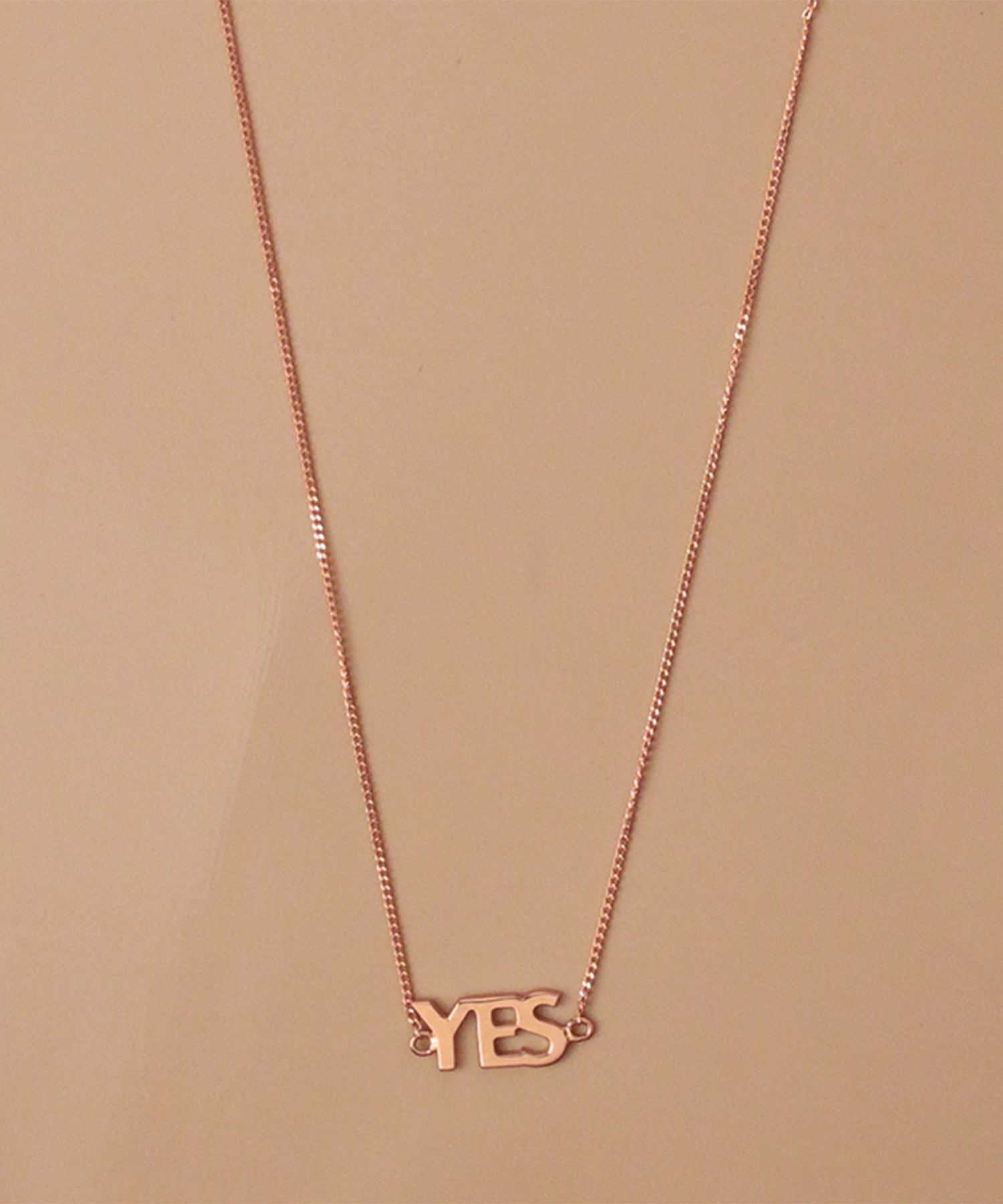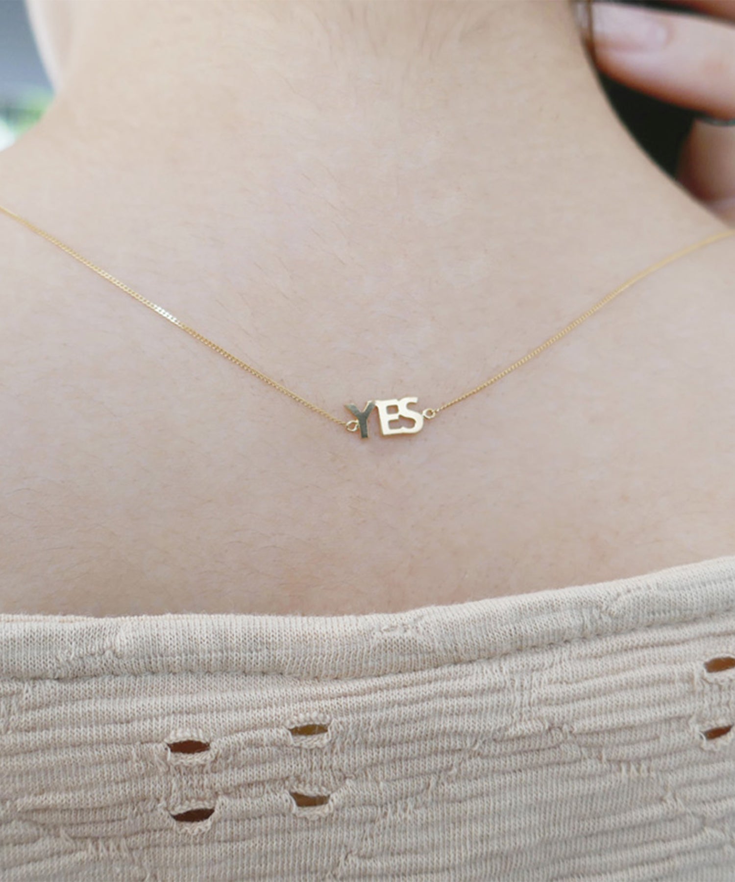 前と後ろどちらにしてもお使いいただける2WAYで楽しめるデザイン。自分を信じて私らしくあなたらしく。"YES"のモチーフネックレス。