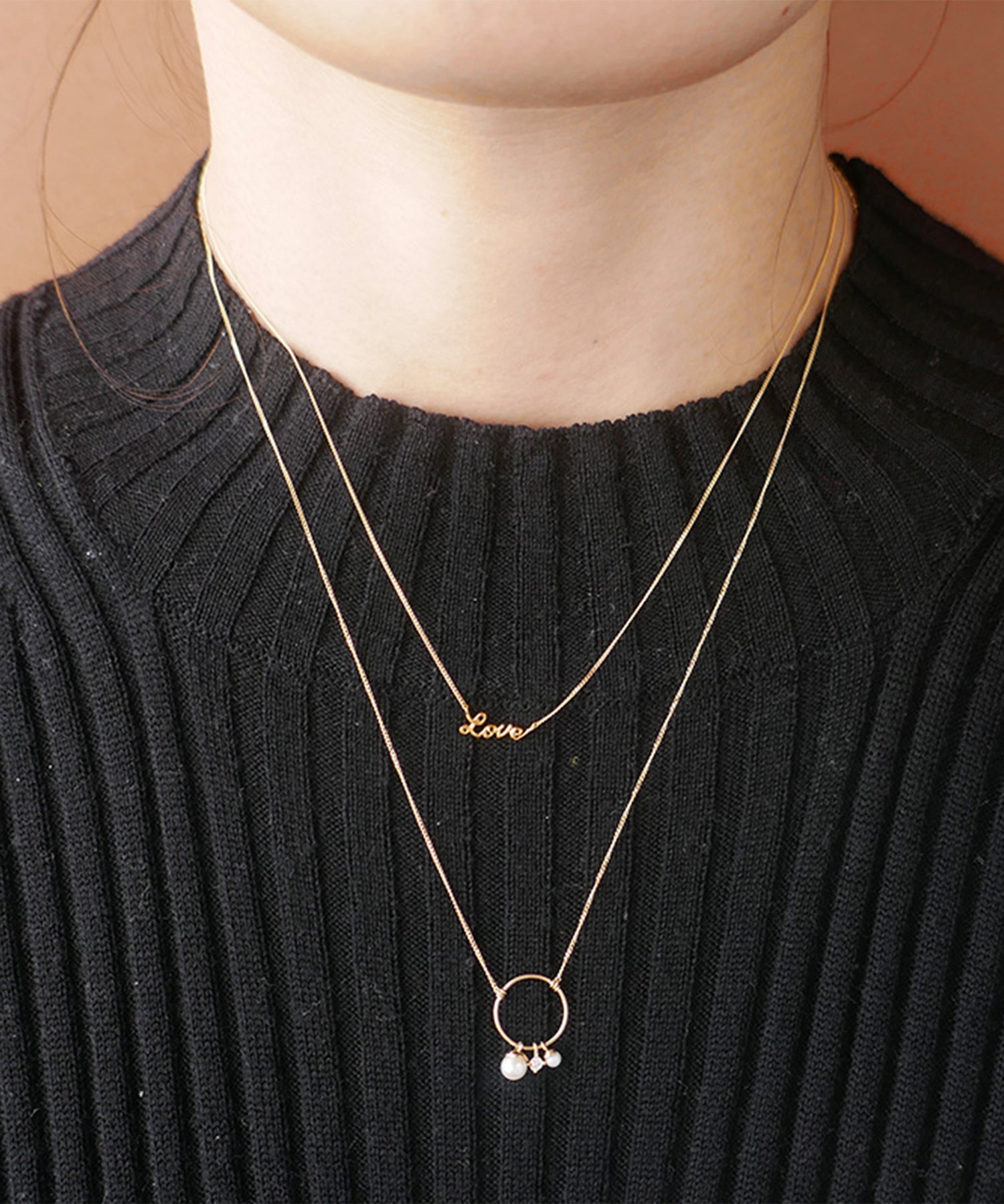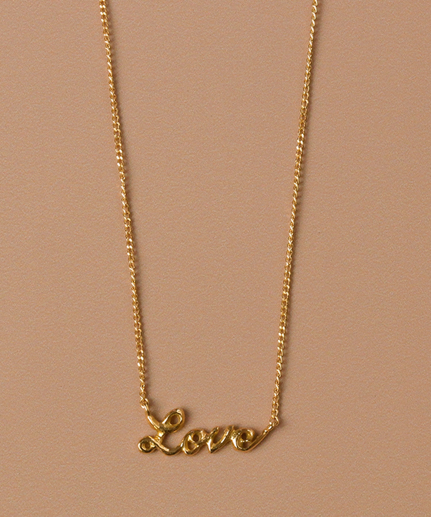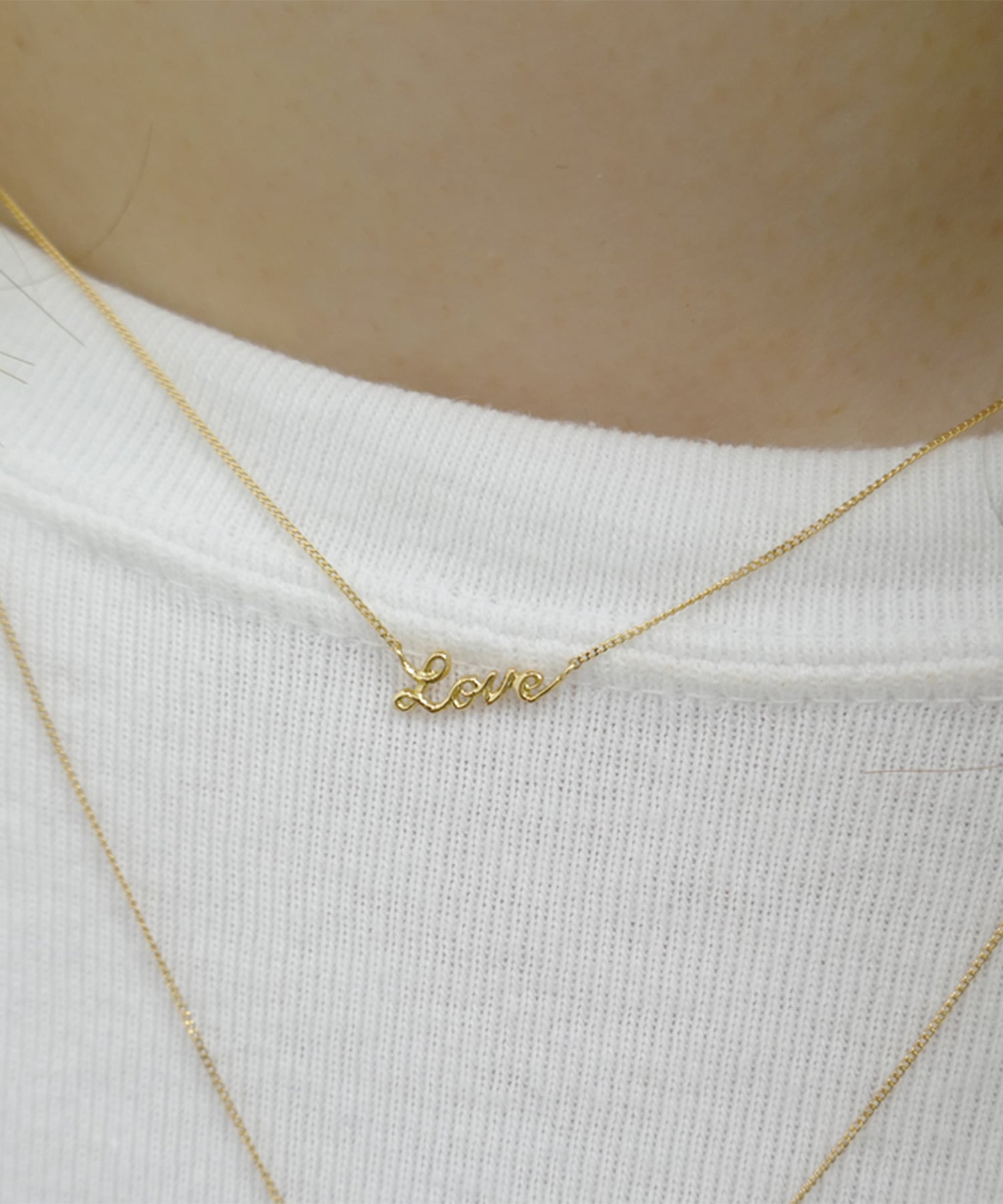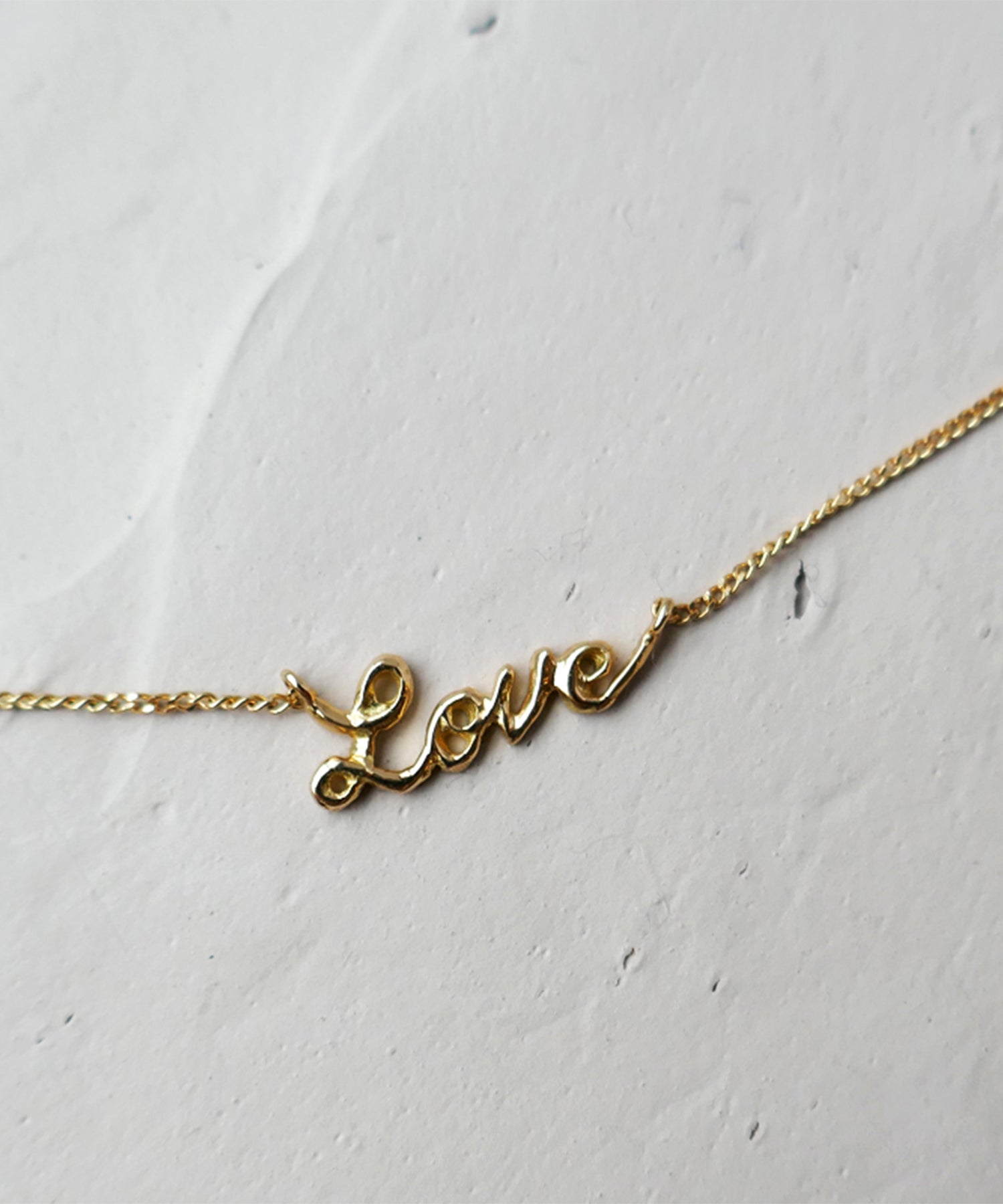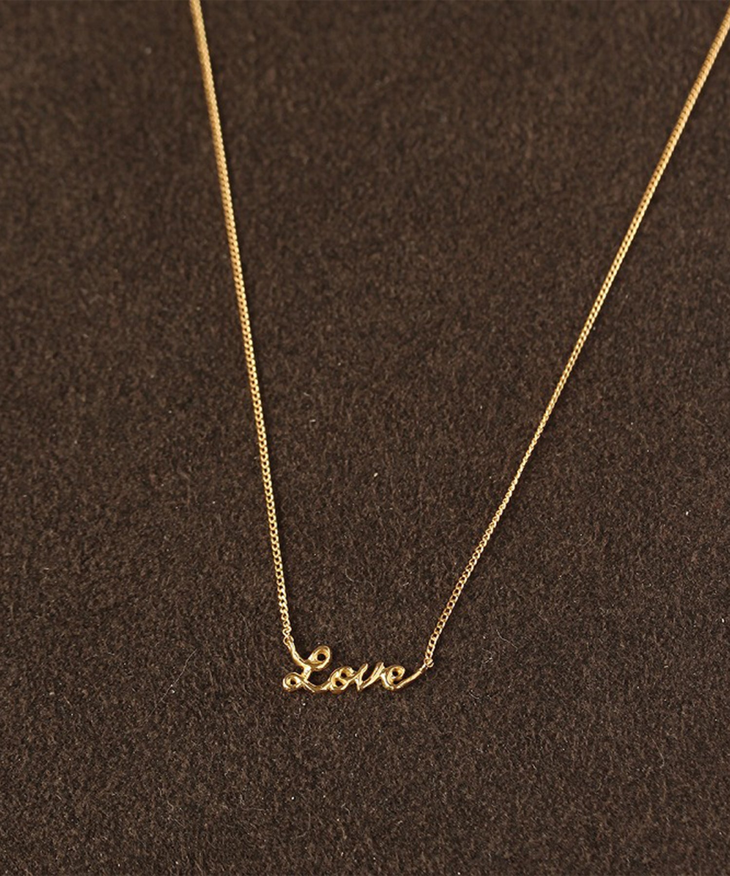 筆記体のフォントがかわいいLoveネックレス。大きすぎないサイズでコーディネートにも取り入れやすく華奢なチェーンは首元をすっきり見せてくれるとても優秀なアイテムです。