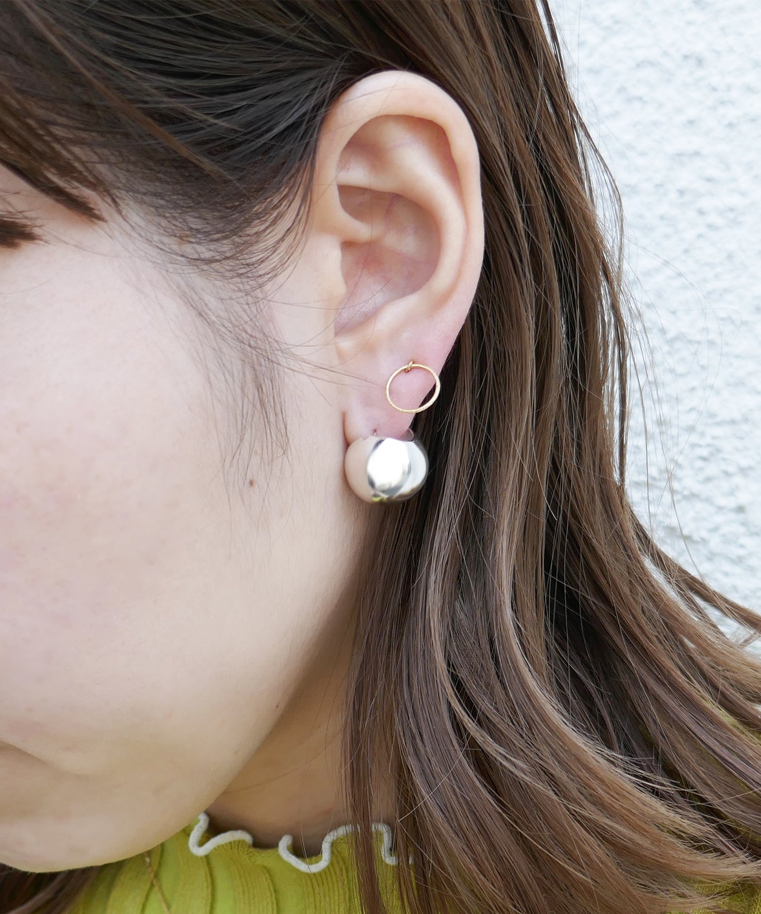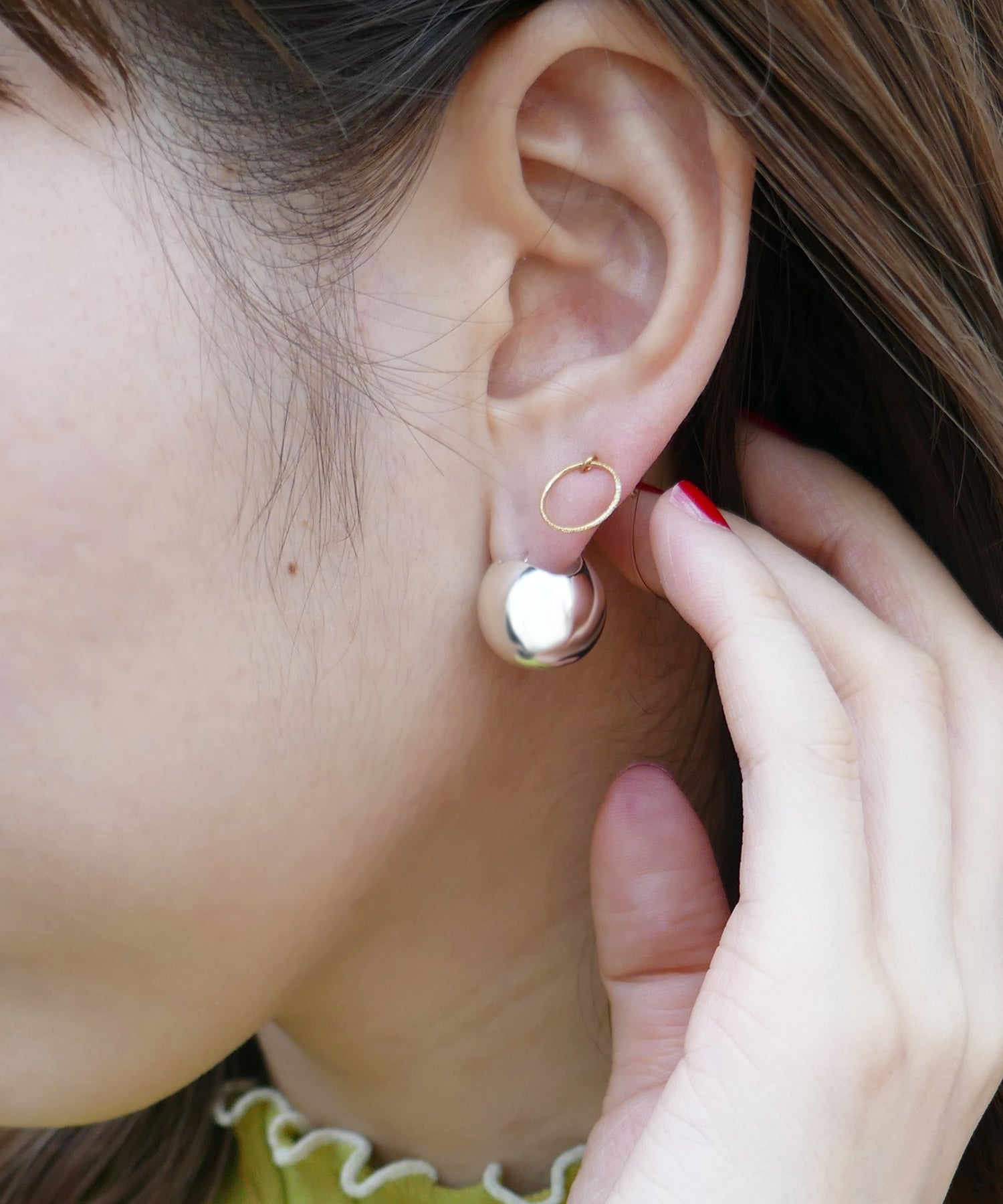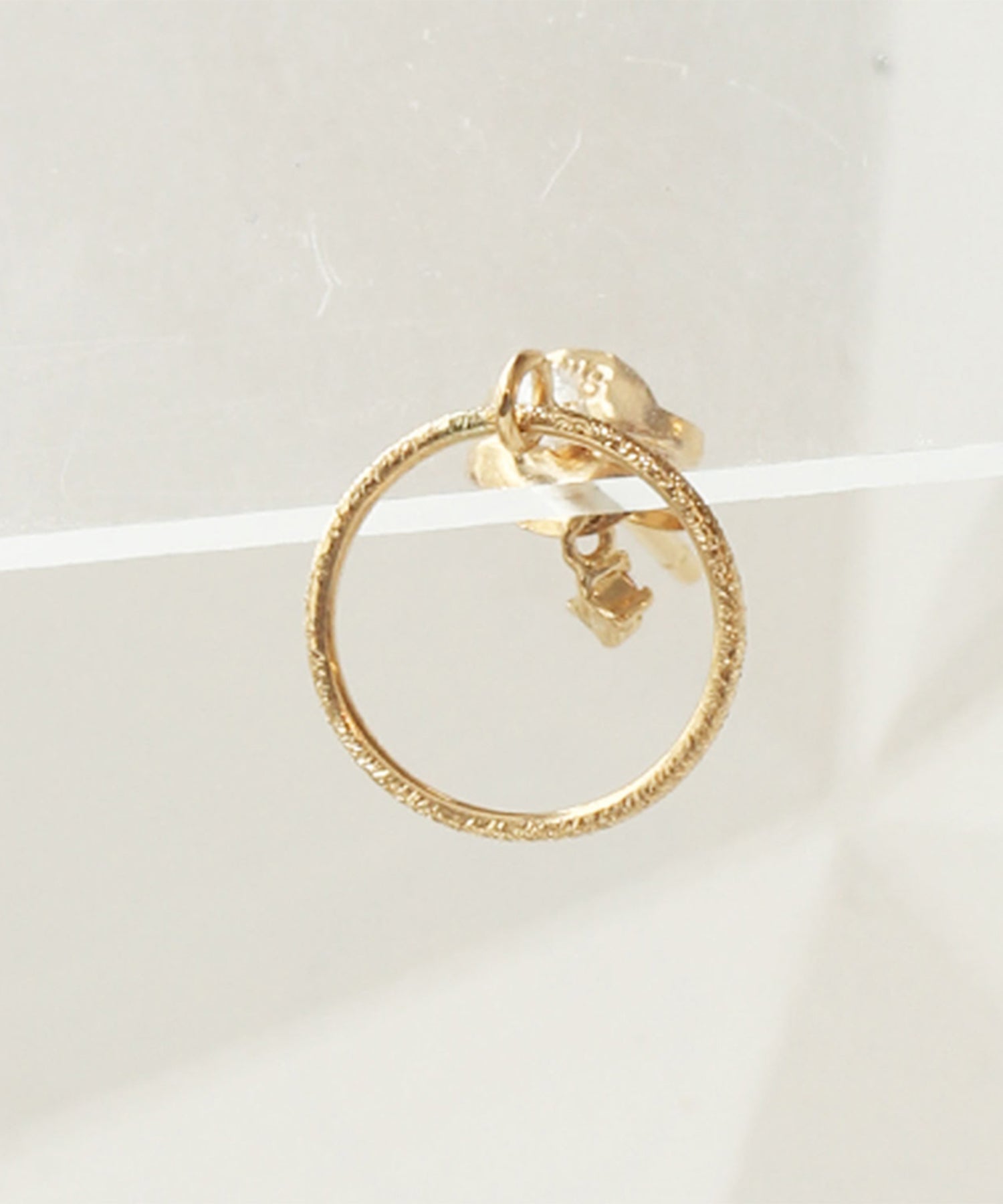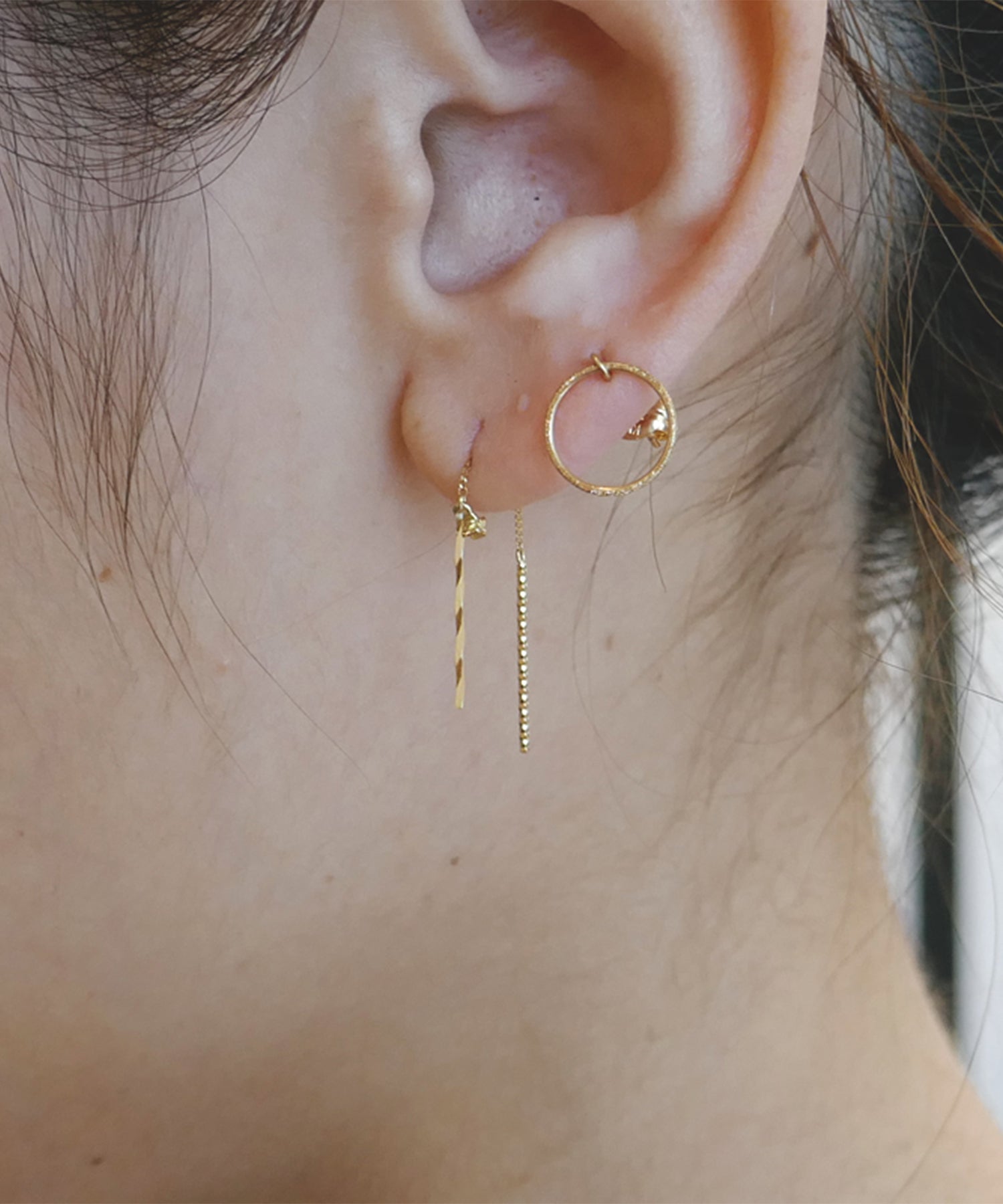 スターダスト加工が施された揺れるミニフープモチーフのピアス。ひっかかりの心配も無いミニマムなデザインながら着けるとキラキラと輝き存在感を放ちます。大きめフープピアスとの左右アシンメトリーコーデやシンプルなポストピアスとの並べ着けなどデザイン違いで楽しむのがおすすめです。