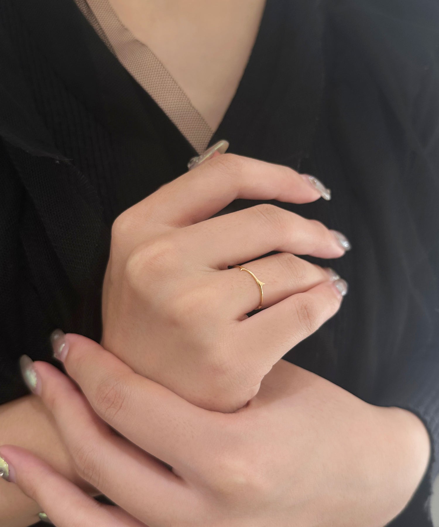 薔薇の枝をモチーフにした遊び心あふれるゴールドリング。