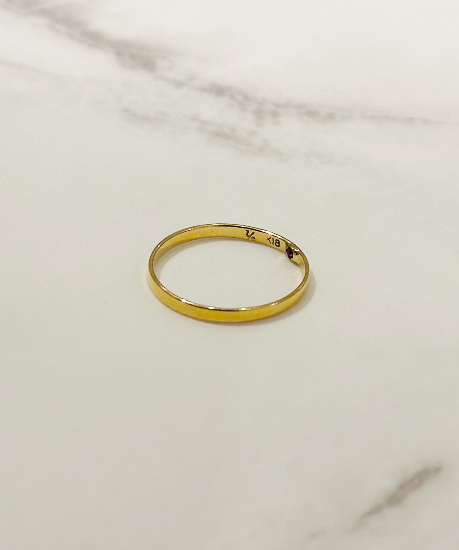 ゴールドのシンプルなピンキーリングテクスチャーにこだわった肌に良くなじむデザインです。