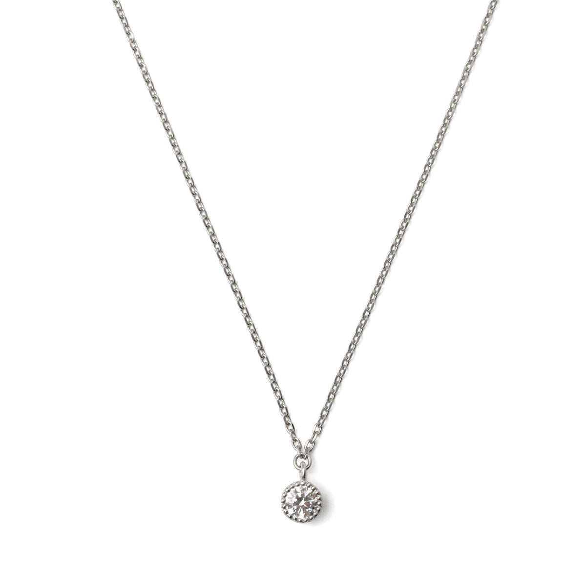 ダイヤモンドの周りのミル打ちと 繊細に煌めくチェーンが