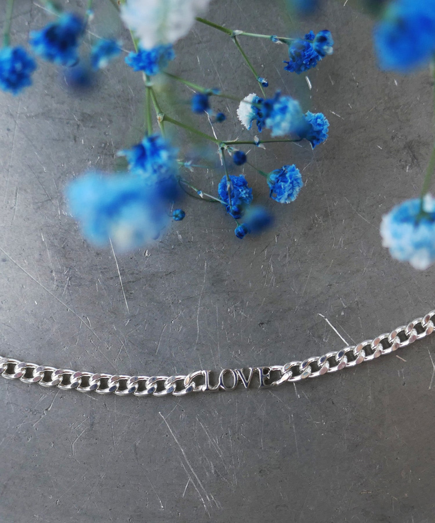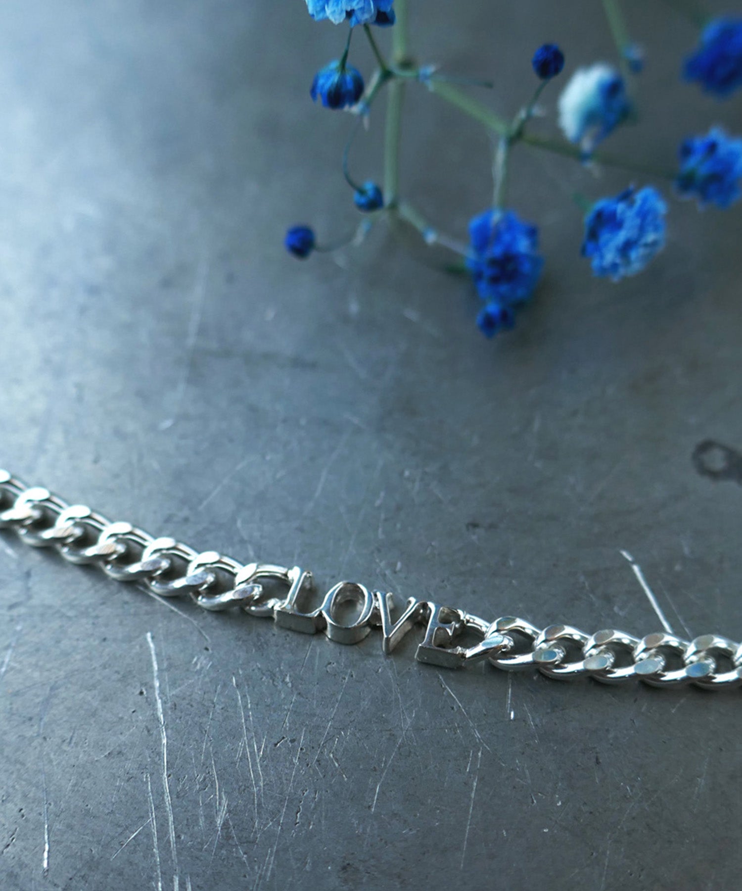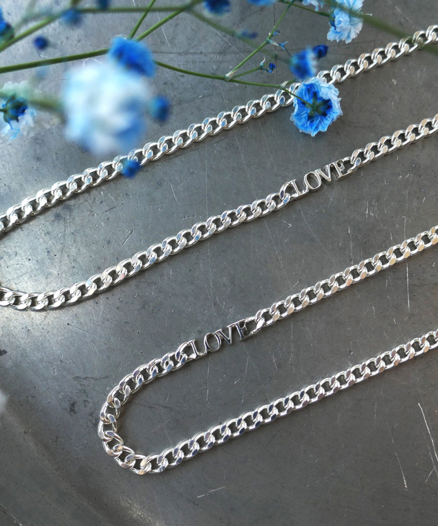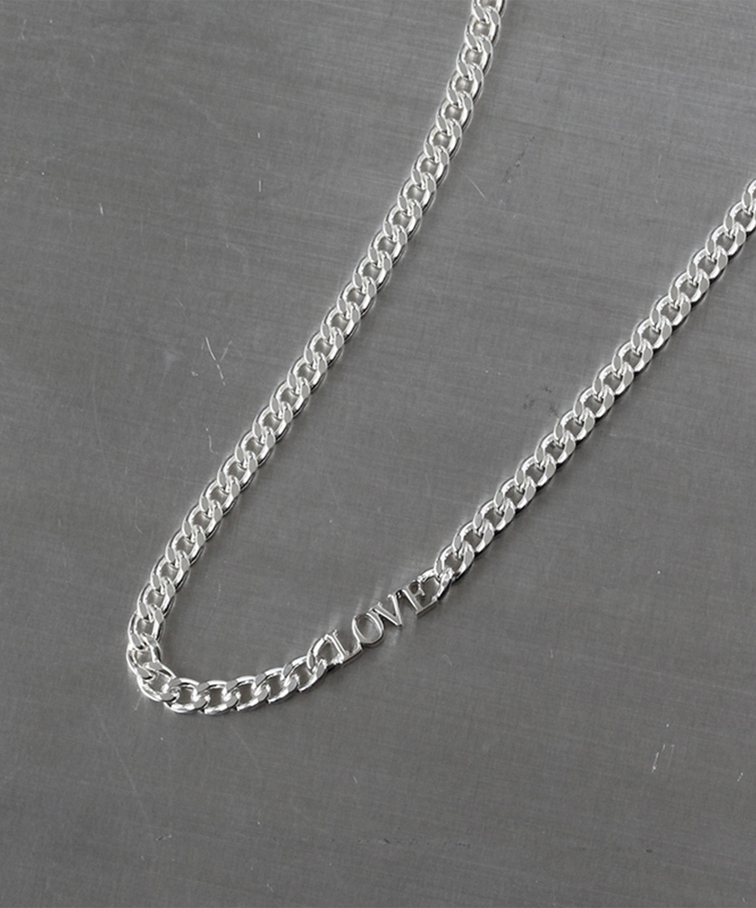 太めのチェーンにLOVEが隠れているシルバーのネックレス。