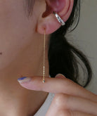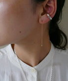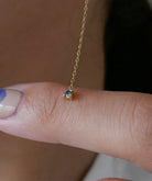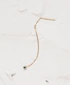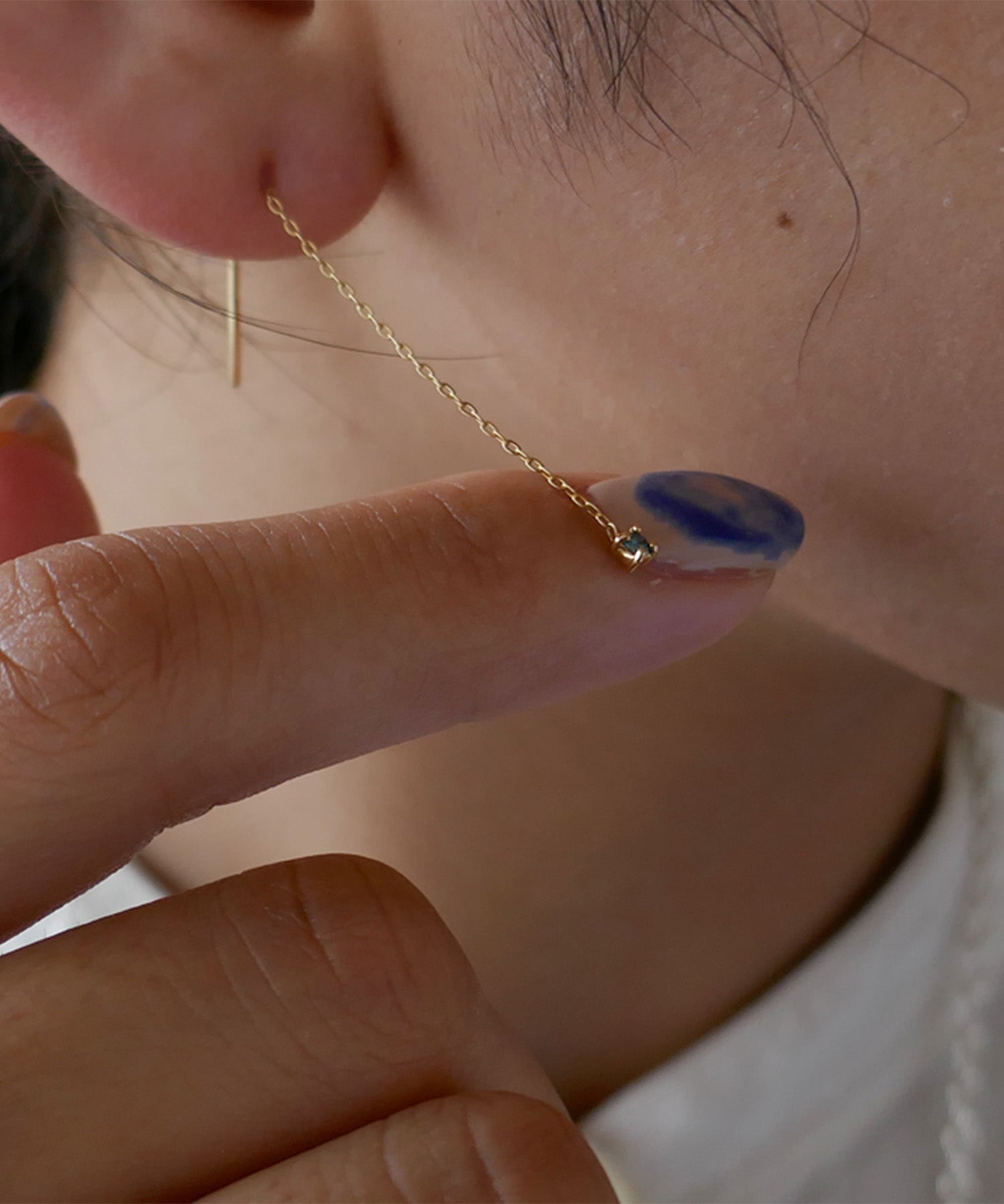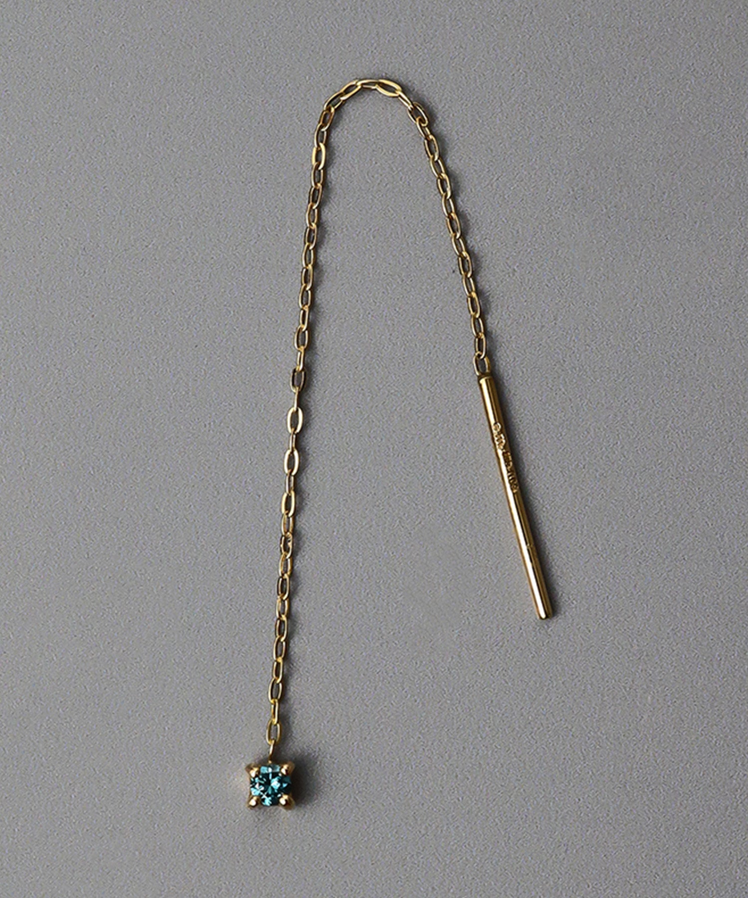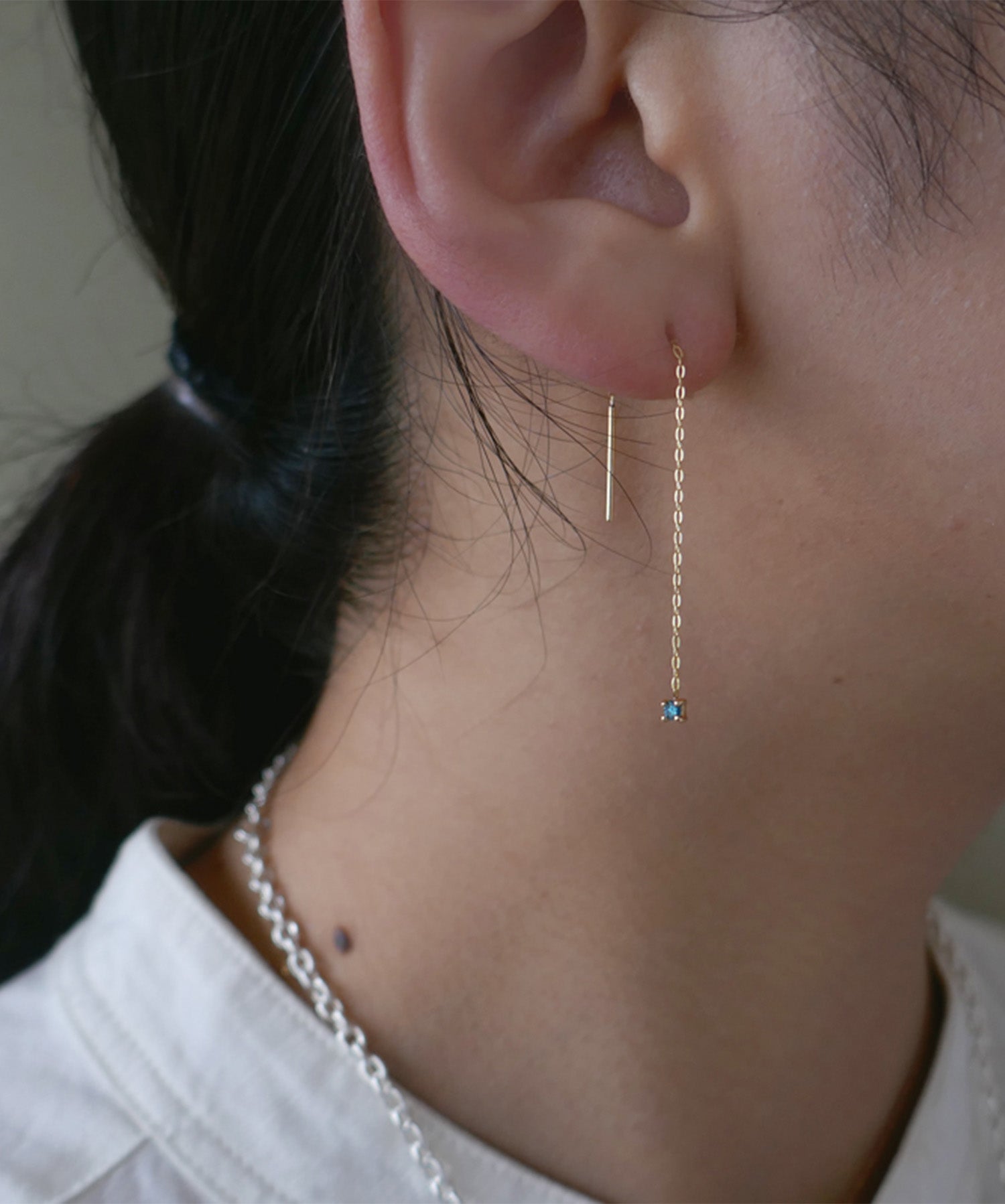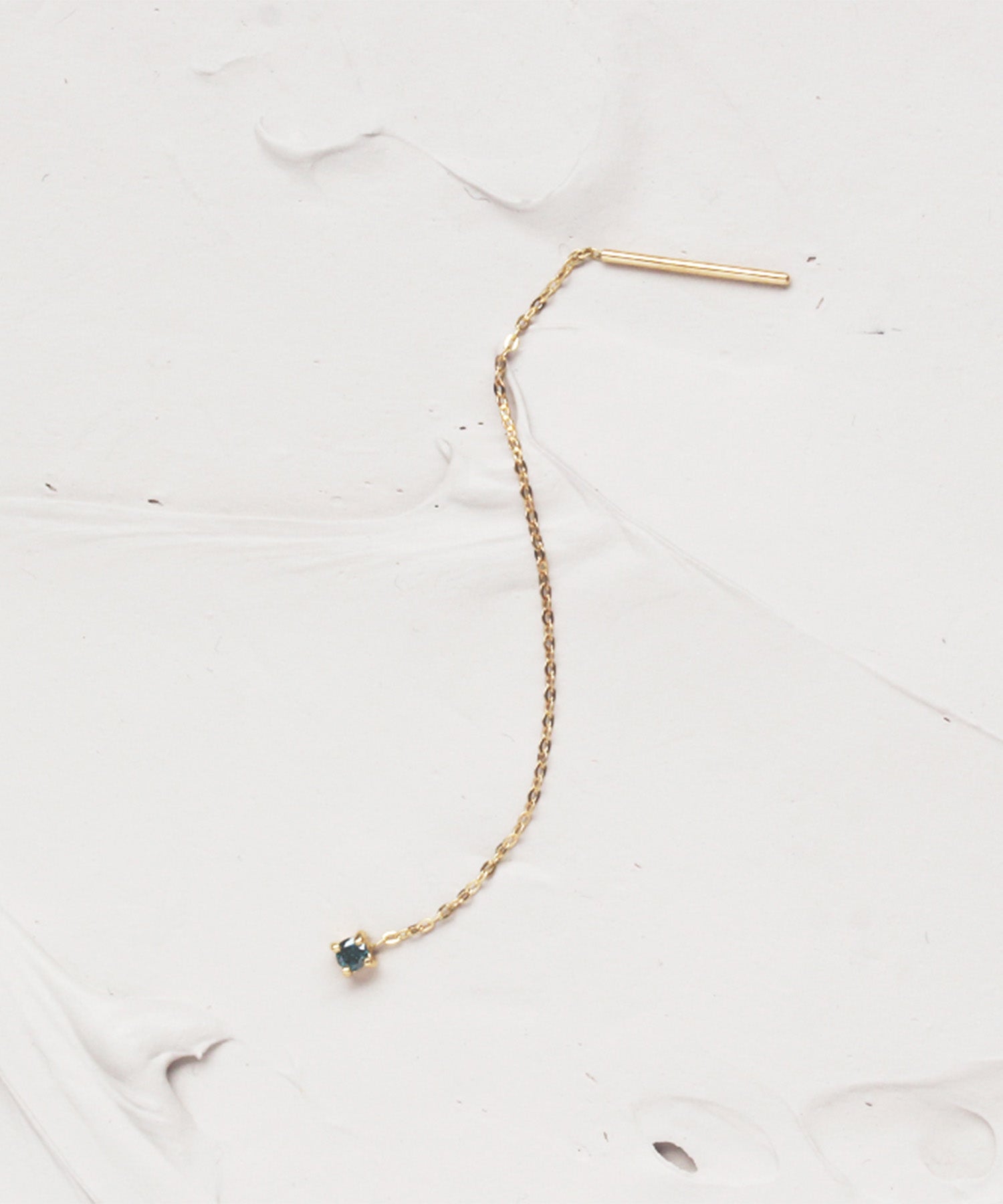 華奢なチェーンの先に繋がるブルーダイヤモンド。耳元できらきらと光るピアスは