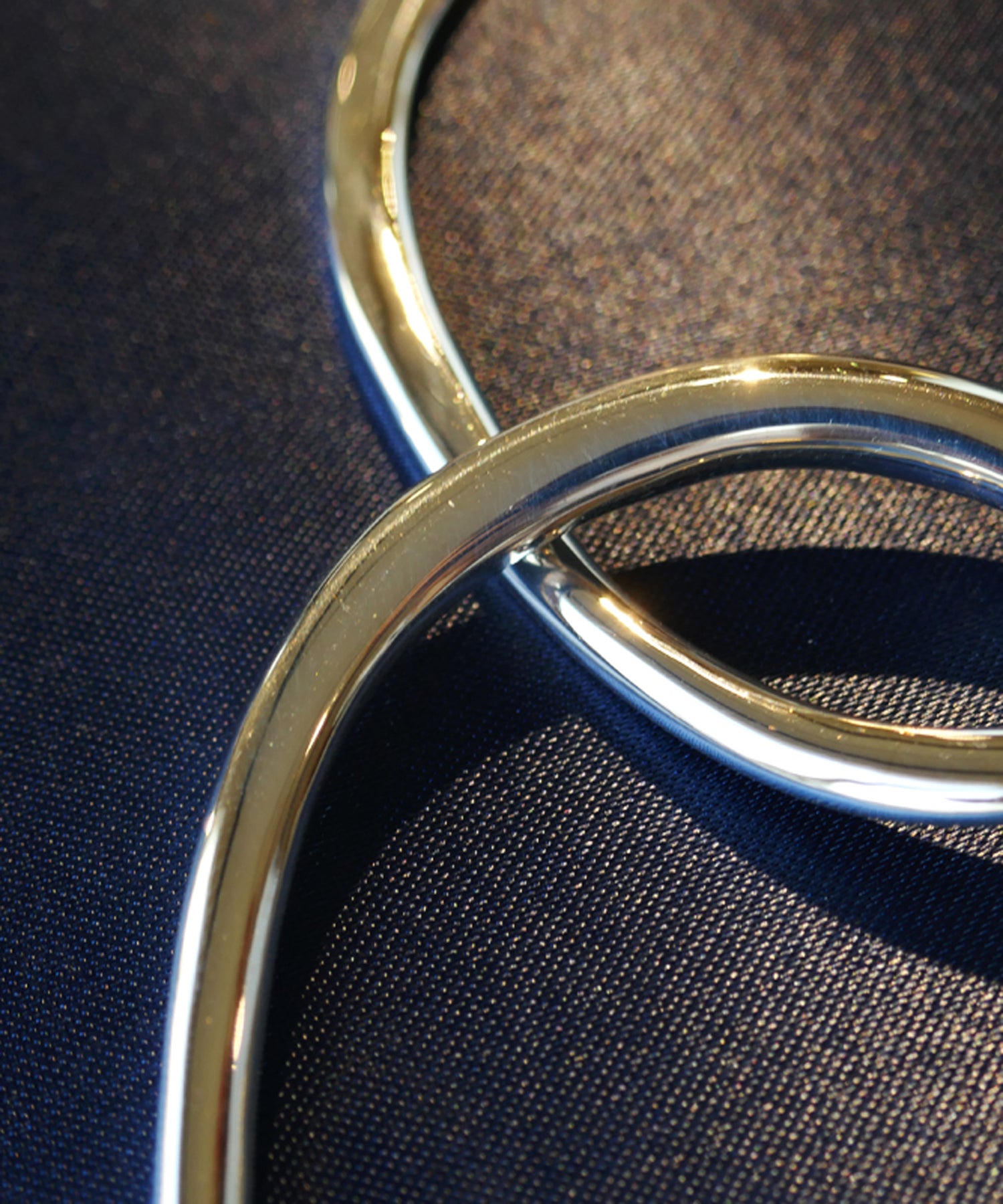 緩やかな曲線の二連バングル。いびつな楕円形と流れるリボンのように
