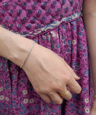 チェーンブレスレットとバングルのいいとこ取り。丸みのあるシルバーのプレートと