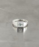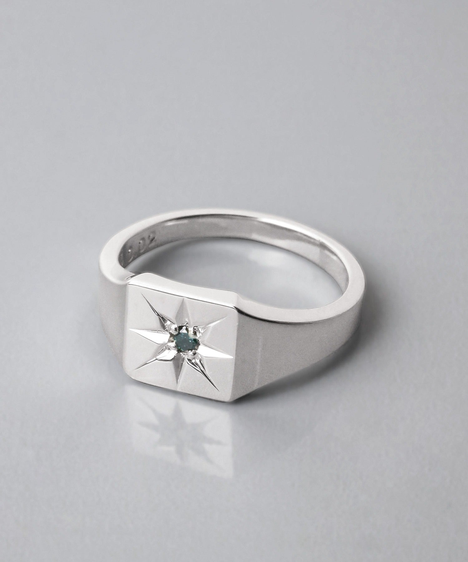 シルバーの印台に、後光留めのブルーダイヤモンドが