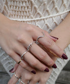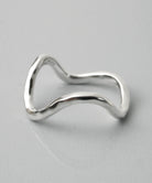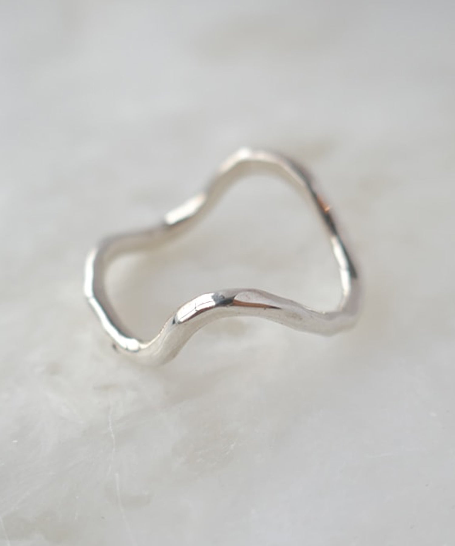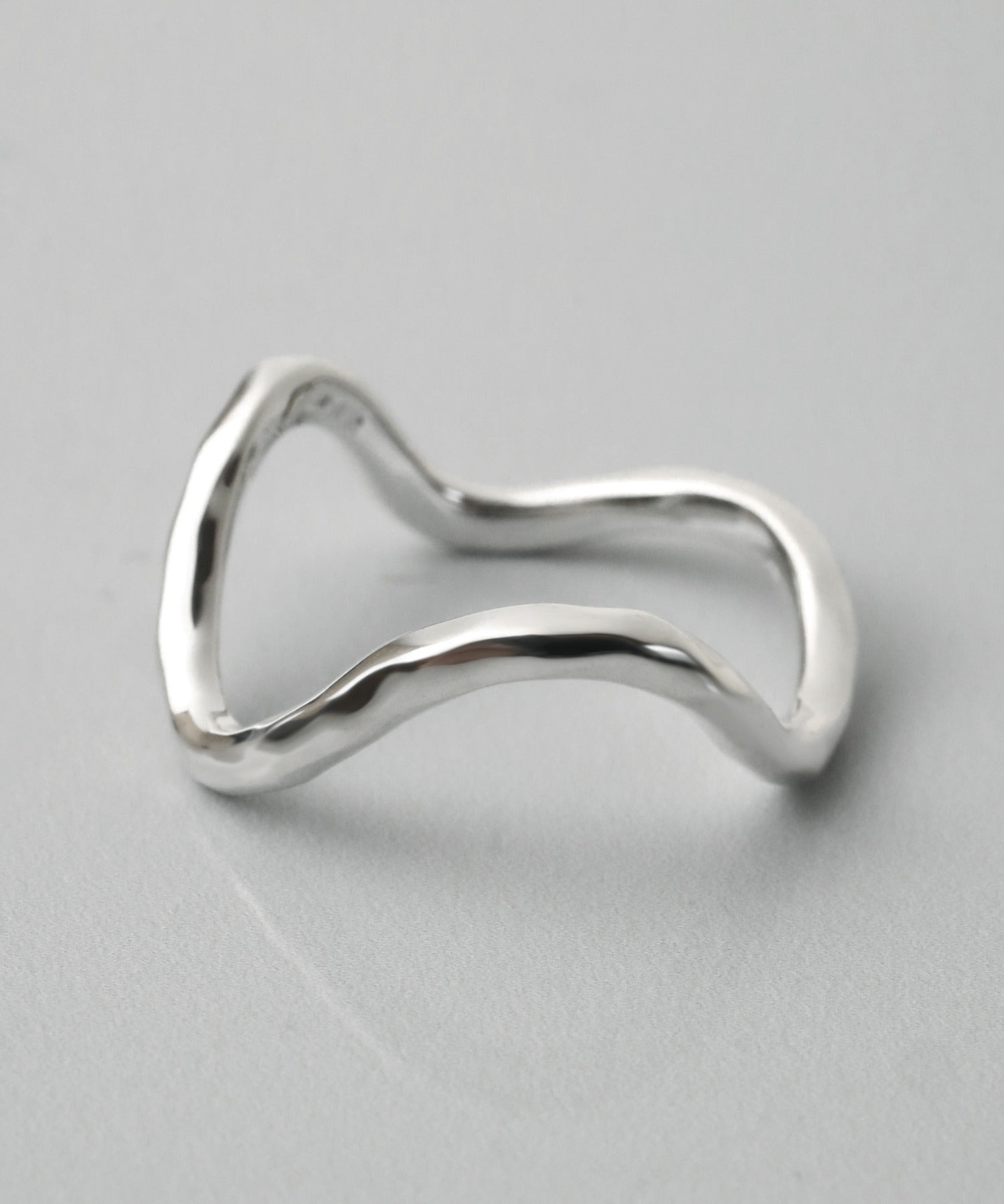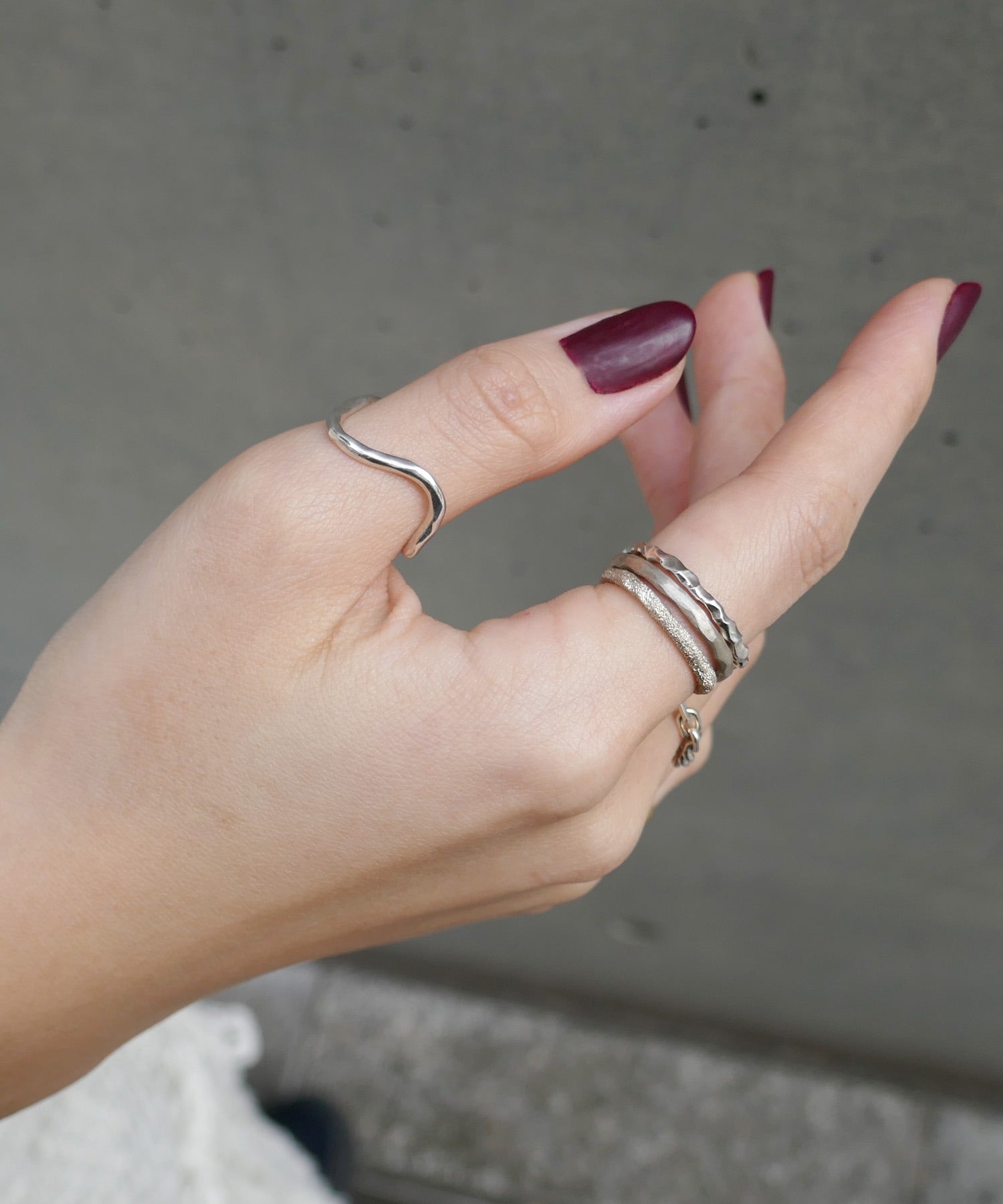 きついウェーブが見た目に華やかなシルバーリング。何本も重ねたうちのひとつに加えることで