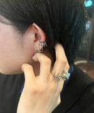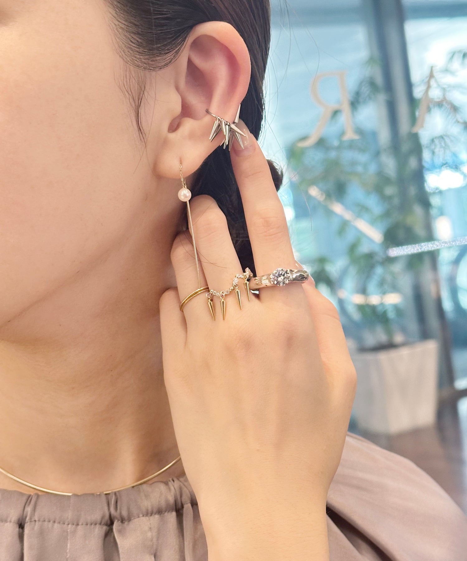 シルバースタッズにメインのイヤーカフ。程よい細さのアームが