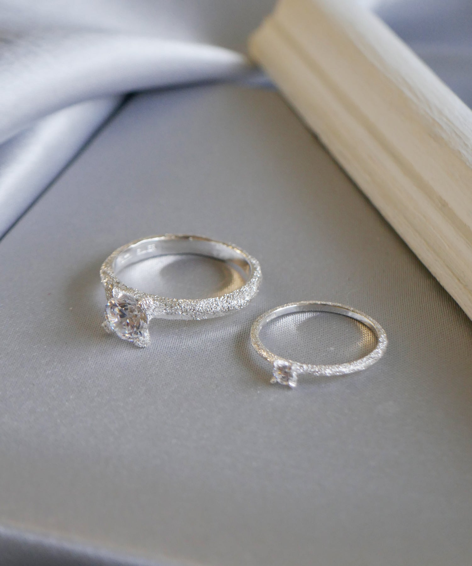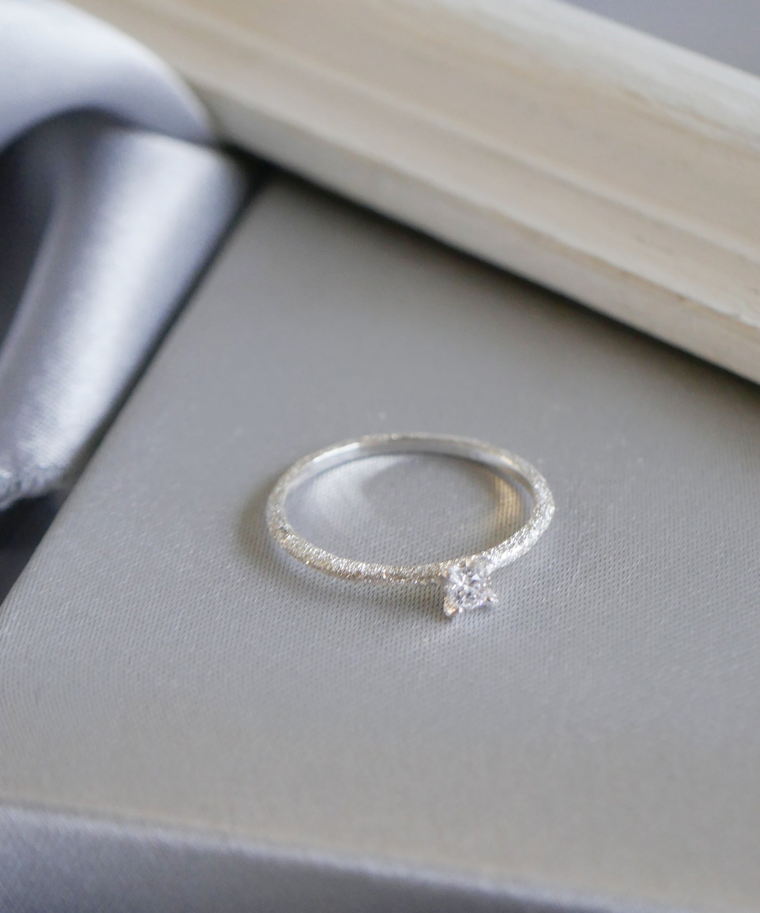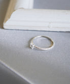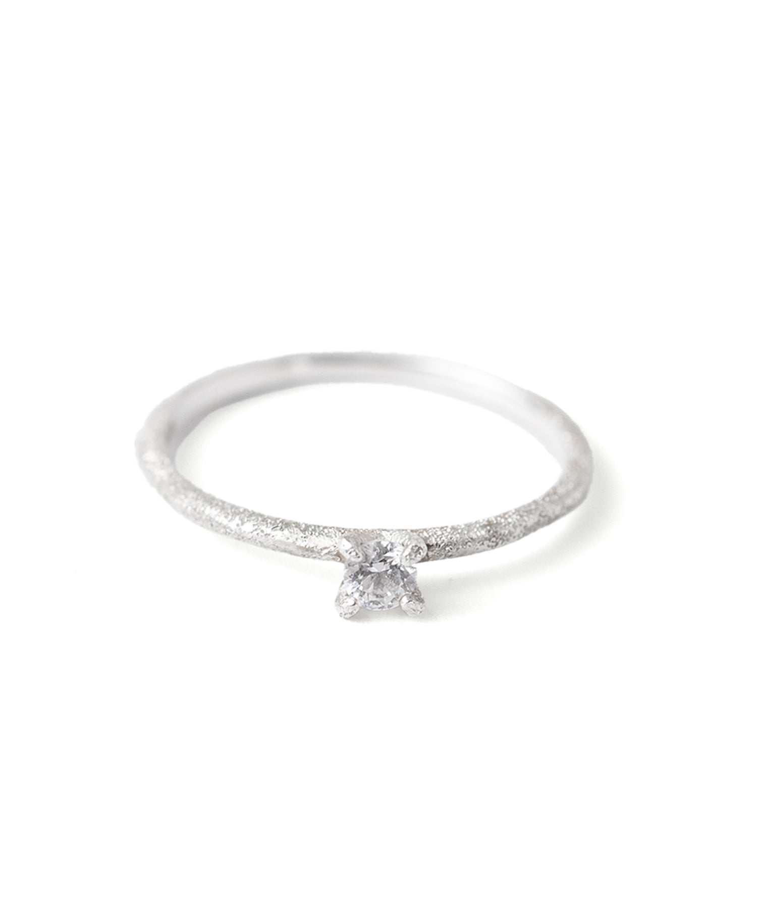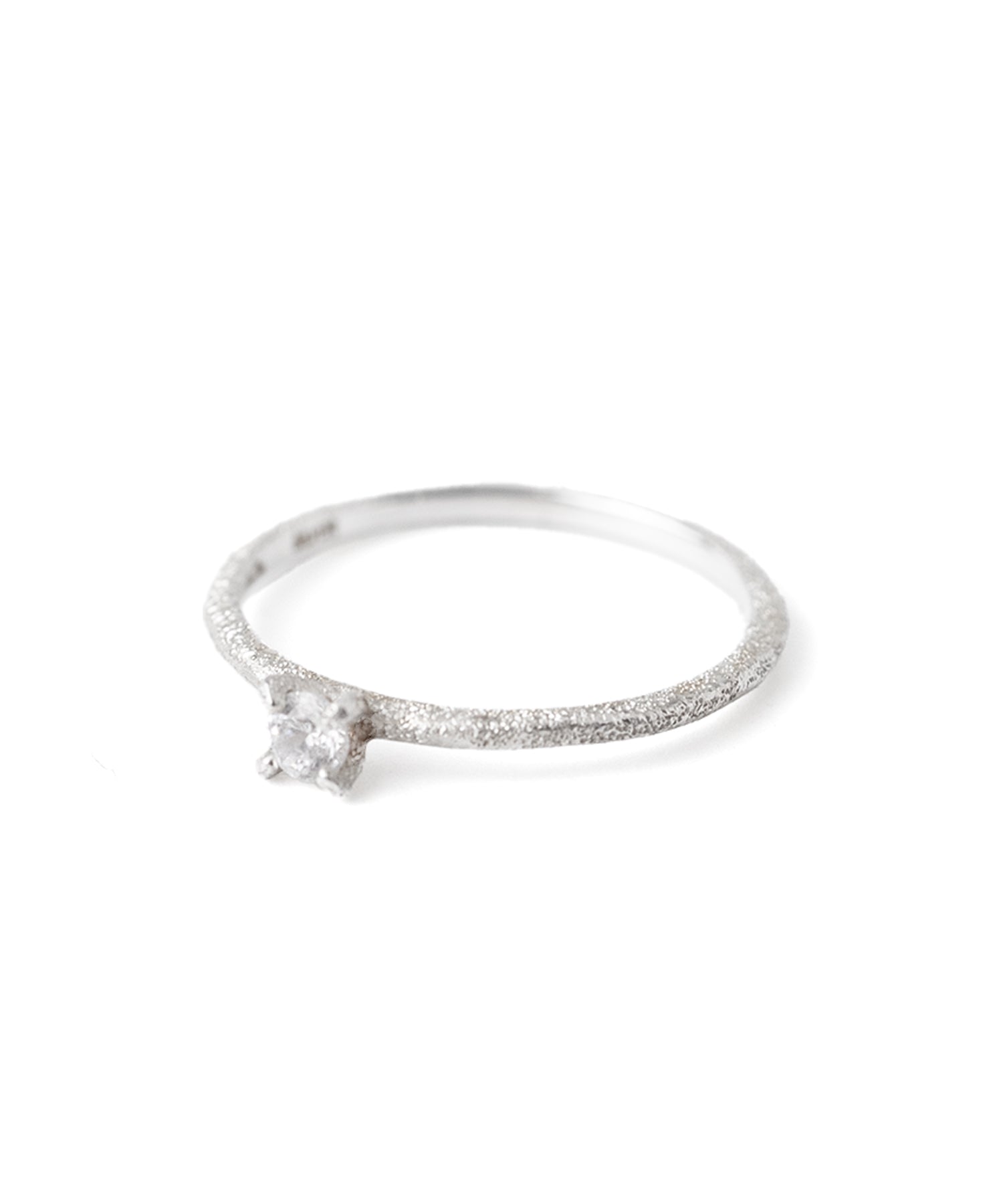 キュービックジルコニアが1石セッティングされたアームに、 スターダストのテクスチャーを施したシルバーのピンキーリング。