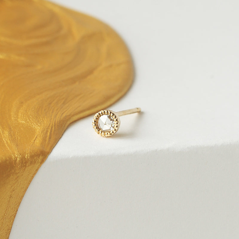 キラキラと瑞々しいローズカットのダイヤモンドとそれを囲むイエローゴールド。