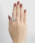 トップ部分のモチーフは幅が広く横の指に干渉するため、複数のリングでコーディネートを組む際は