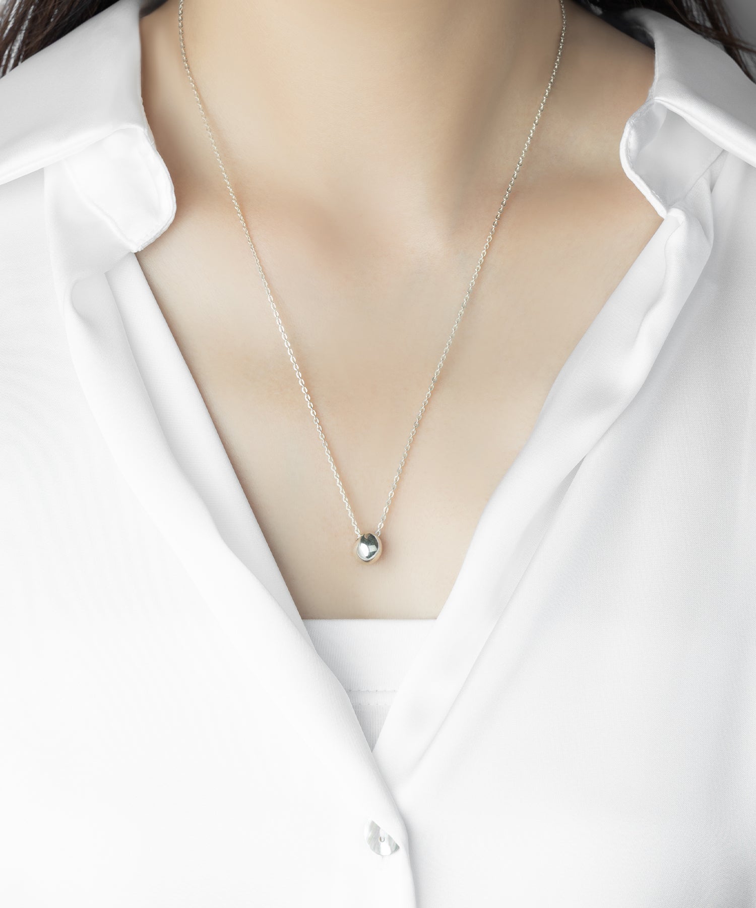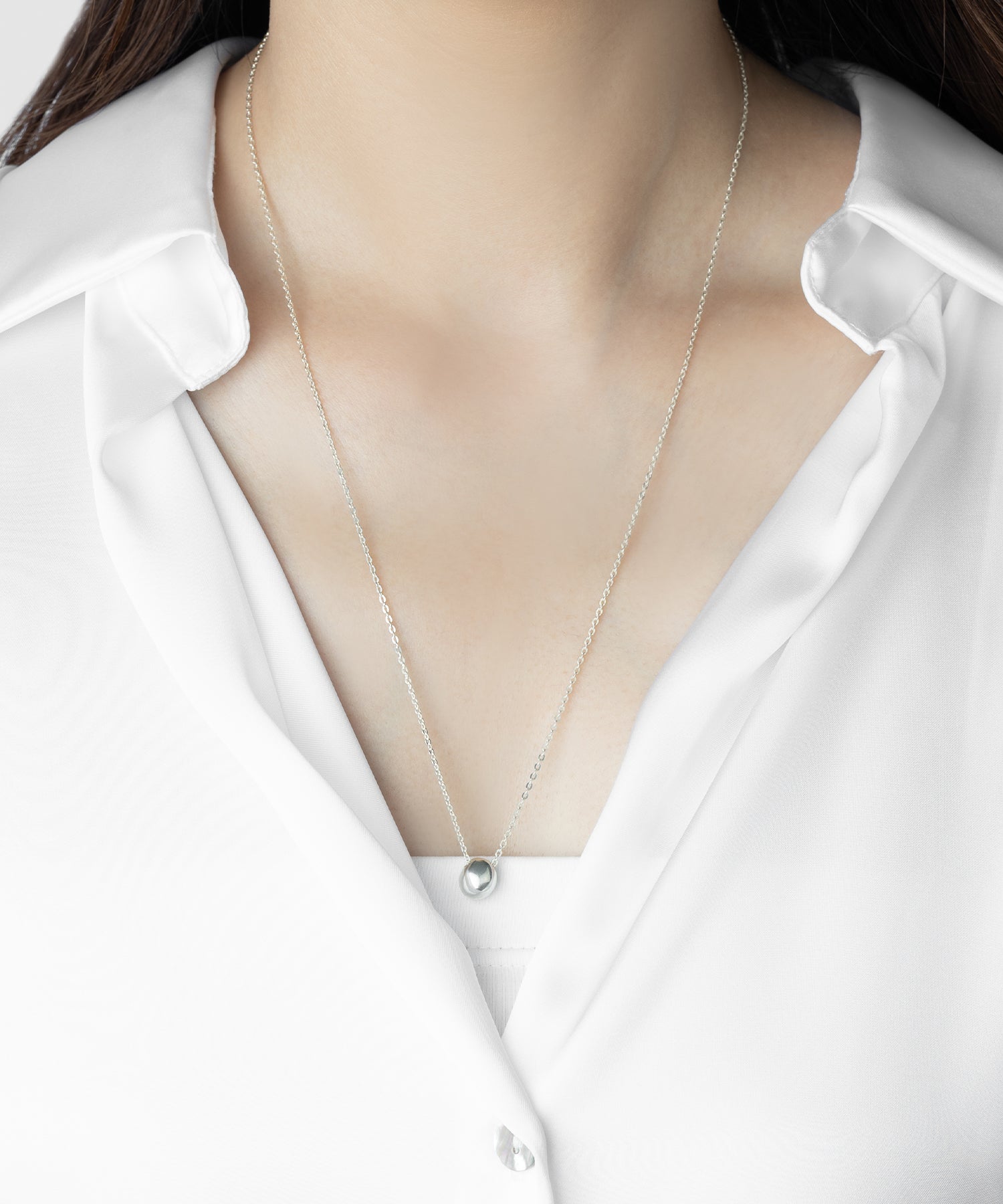 胸元の上部に位置する長さは、首元に余裕がありストレスなく身につけられるほか、服装を選ばない高い汎用性も持ち合わせます。