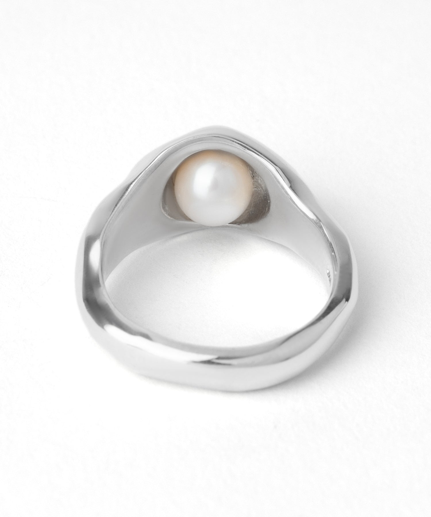 包み込むようにトップの内側にパールがセッティングされているシルバーリング。