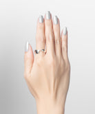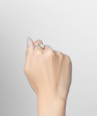 単品での着用はもちろん、ソリティアリングのようなトップに高さのあるリングとの重ねづけもおすすめです。