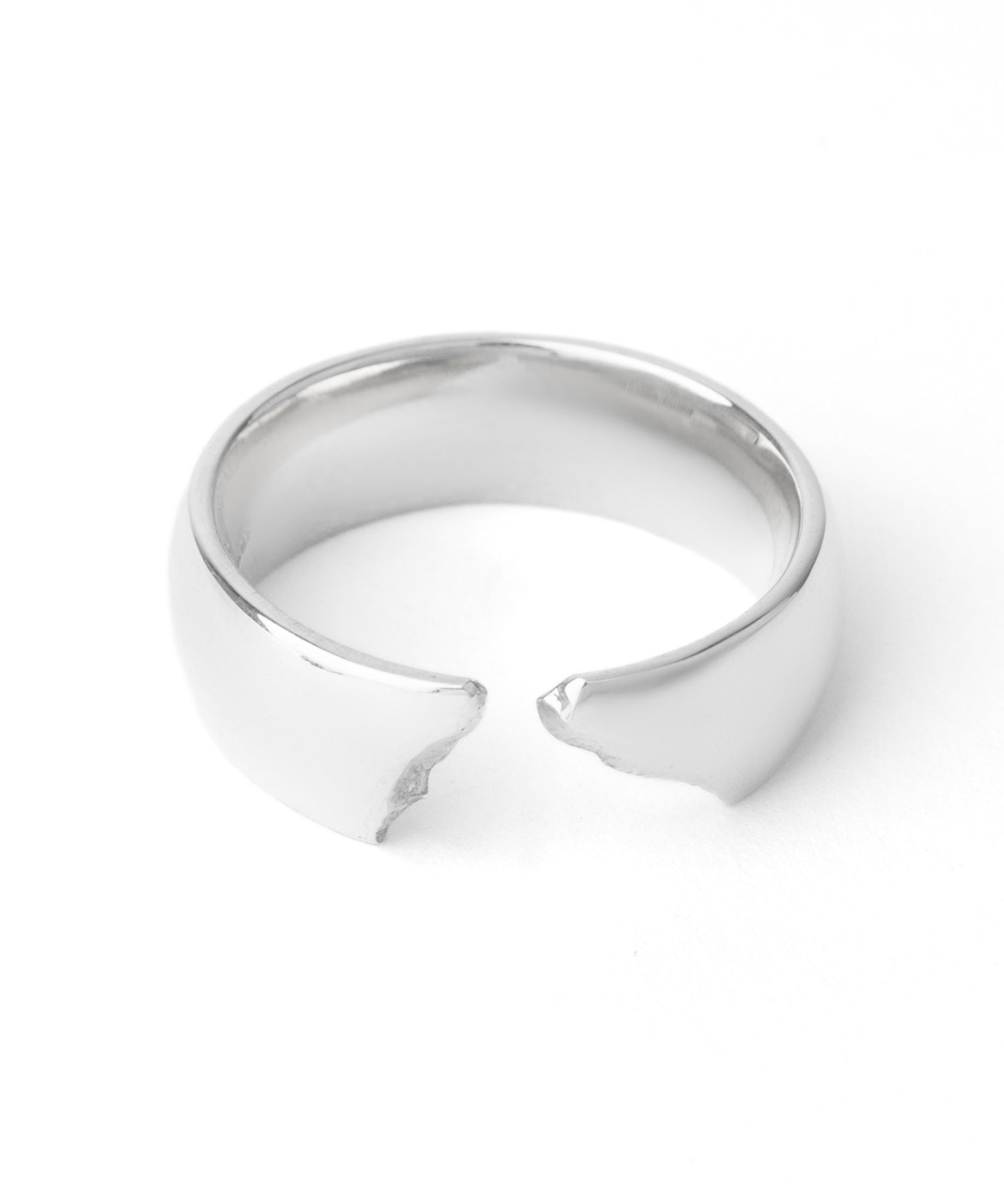 ドームリングの一部分に亀裂が入ったデザインのシルバーリング。