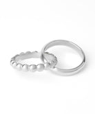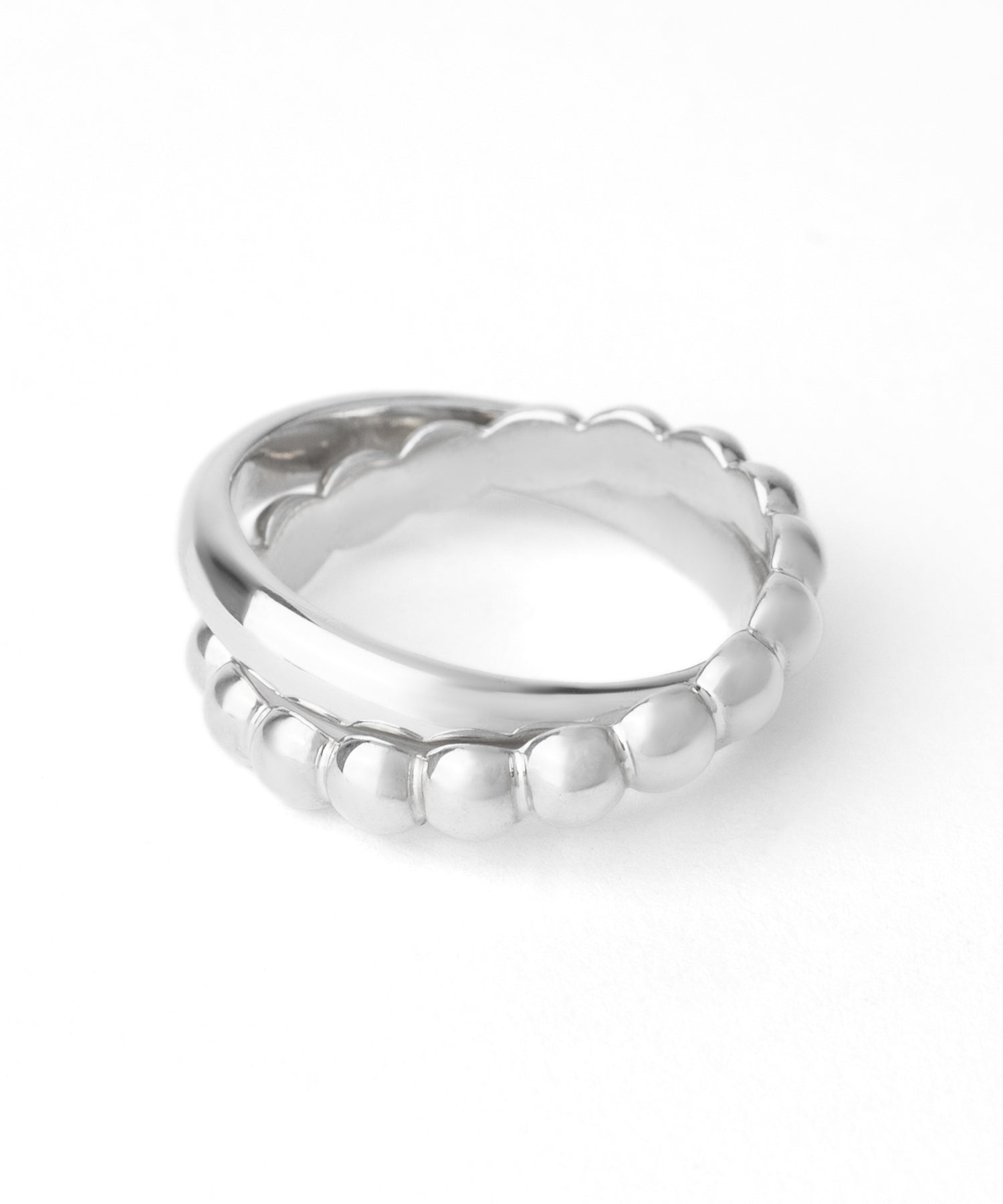 フラットでミニマルなリングに、ボールを連ねたデザインを組み合わせたシルバーの2連リング。