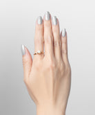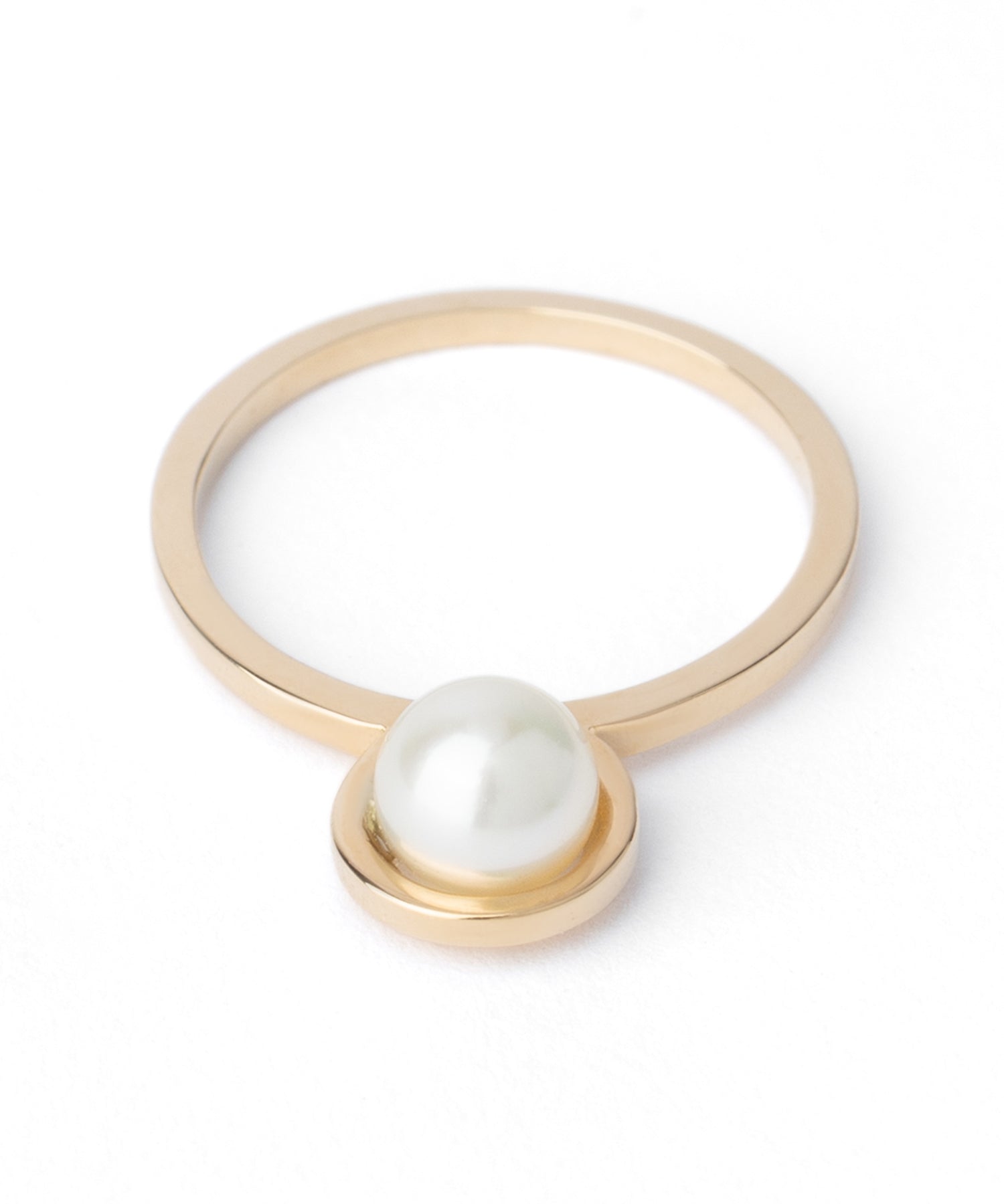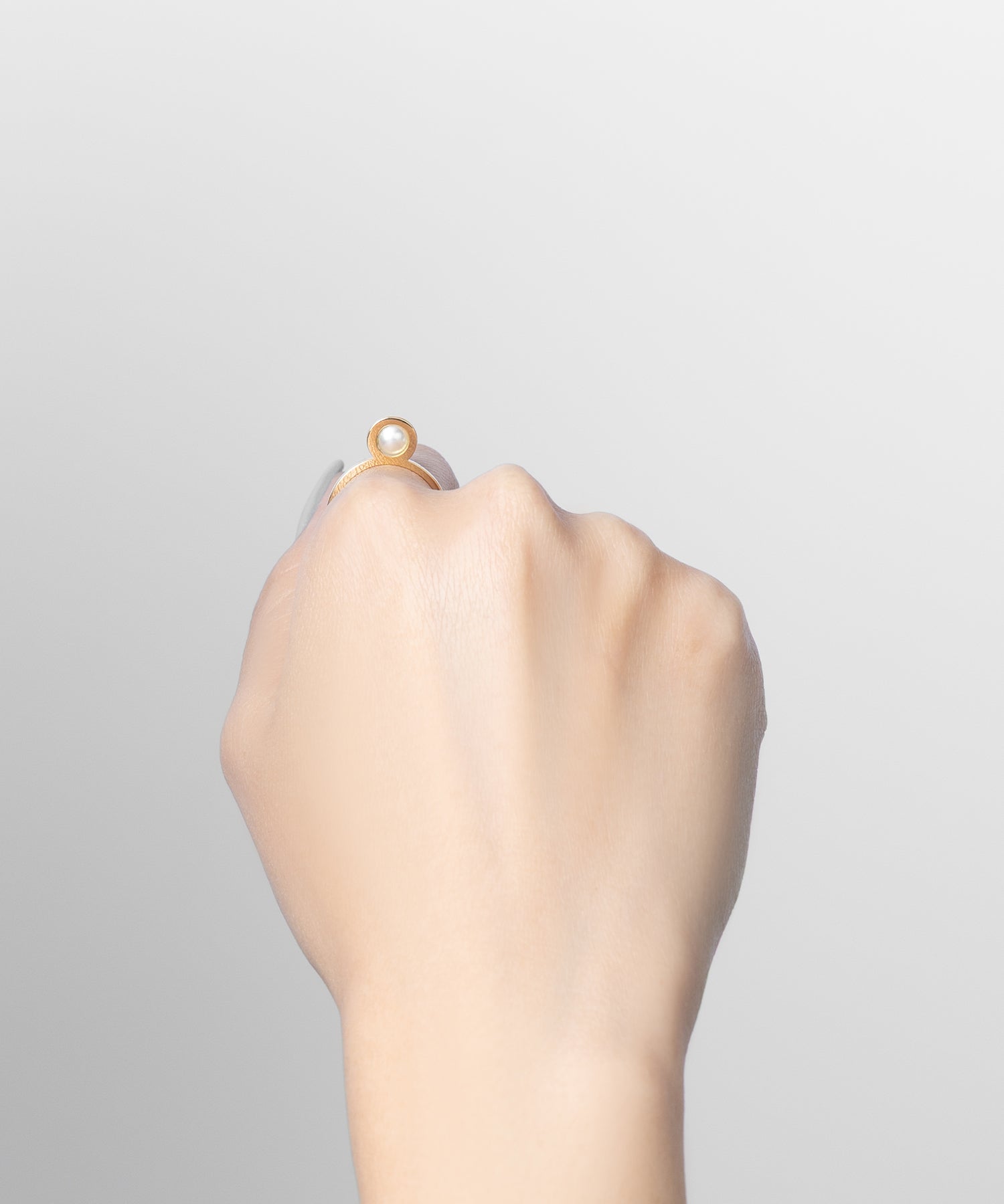 同コレクションのe.m.goldのリングは、重ねたときにアームが隙間なく重なるように仕上げています。