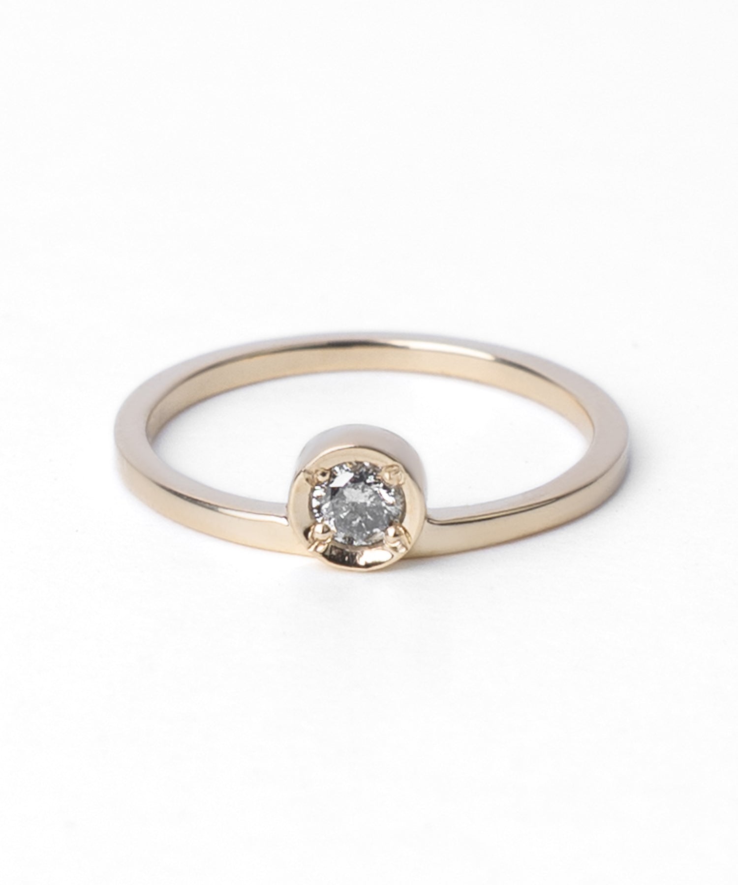 グレーダイヤモンドをセッティングしたゴールドリング。