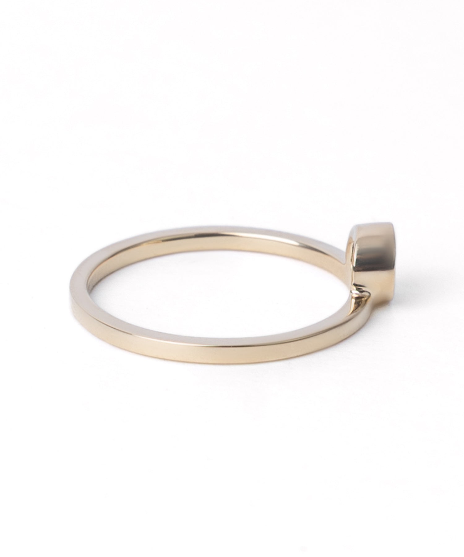 同コレクションのe.m.goldのリングは、重ねたときにアームが隙間なく重なるように仕上げています。
