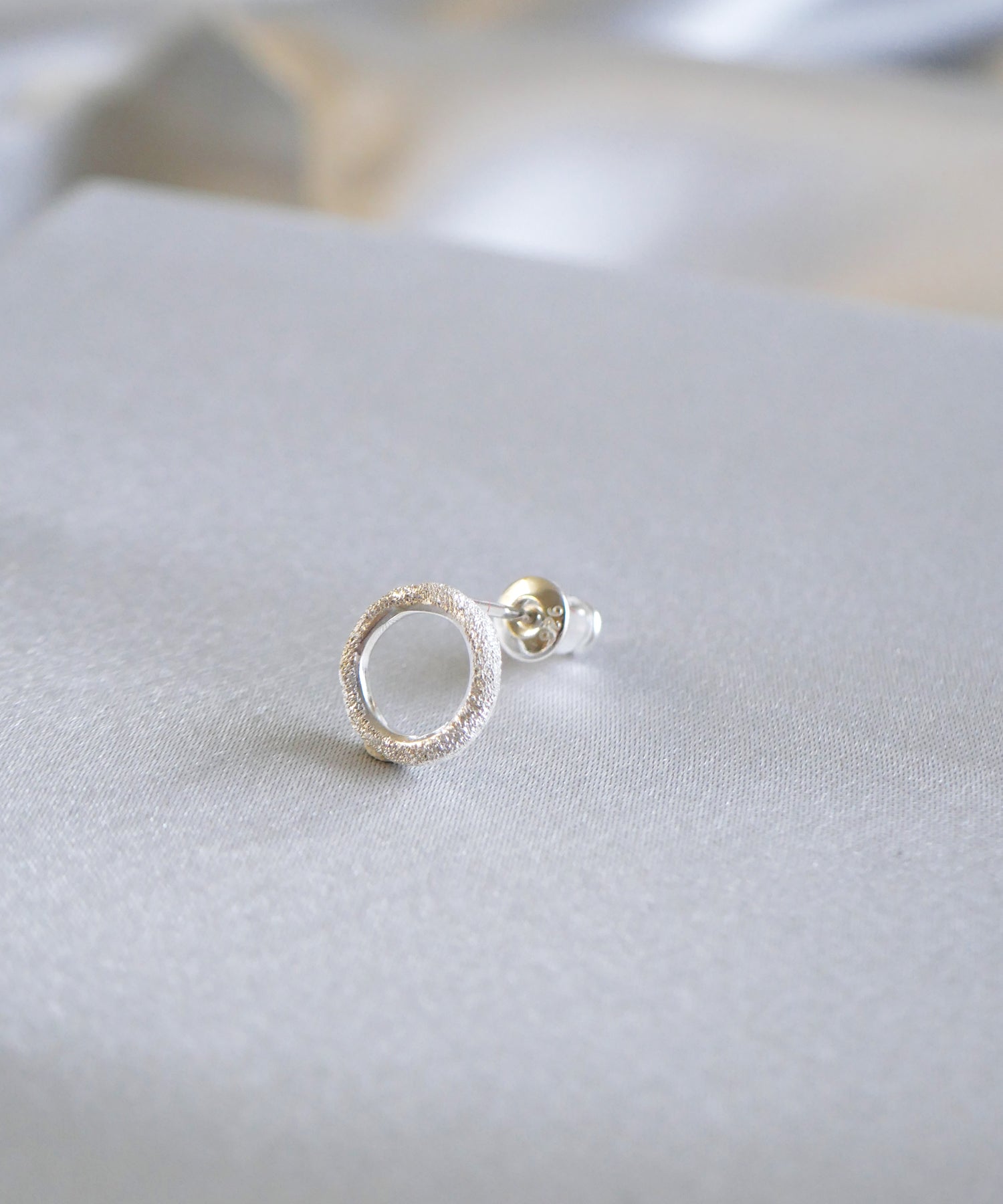 シンプルなシルバーのサークルピアスの表面にスターダストのテクスチャーを施しました。
