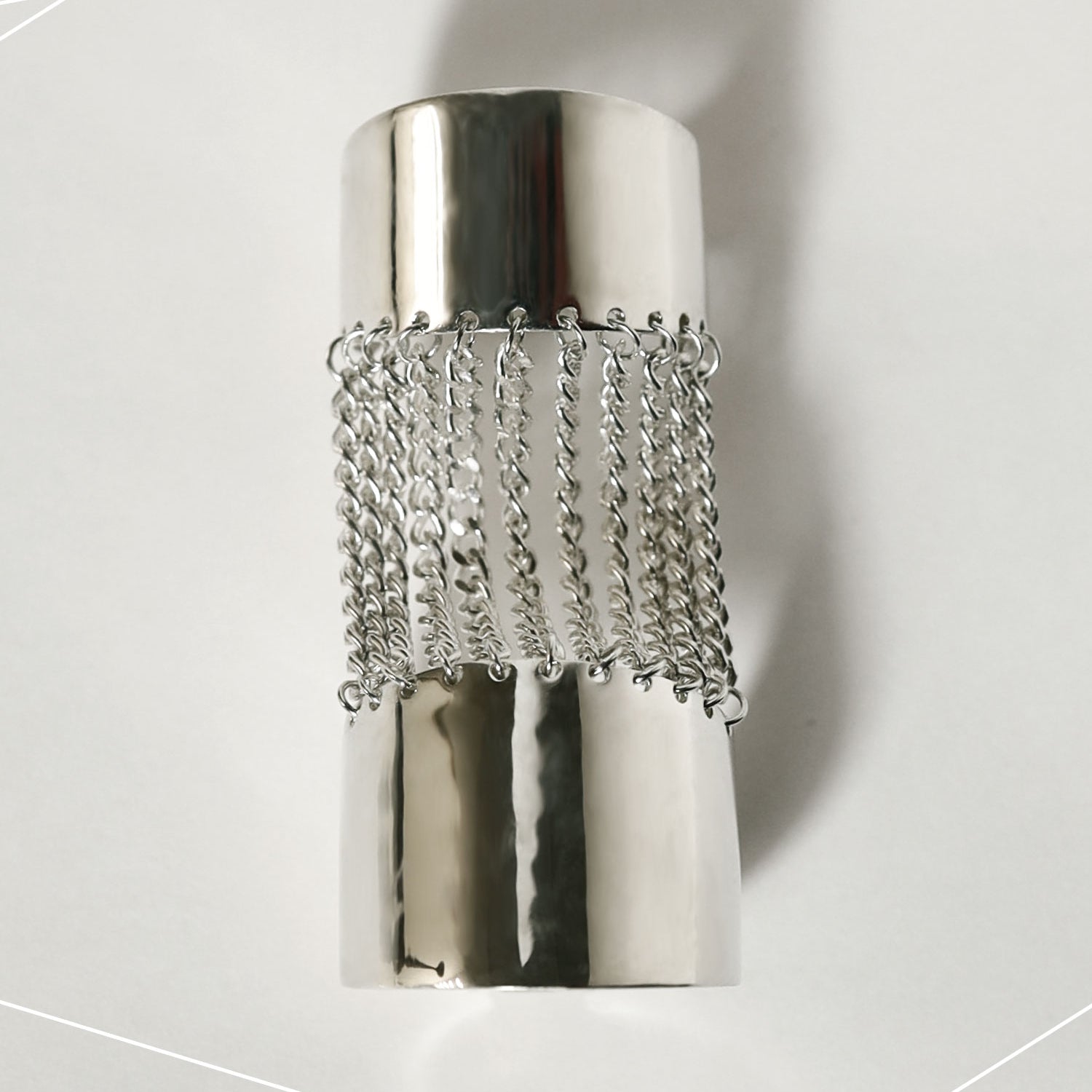 複数のパーツが重なり可動して関節を覆うアーマーリング。
