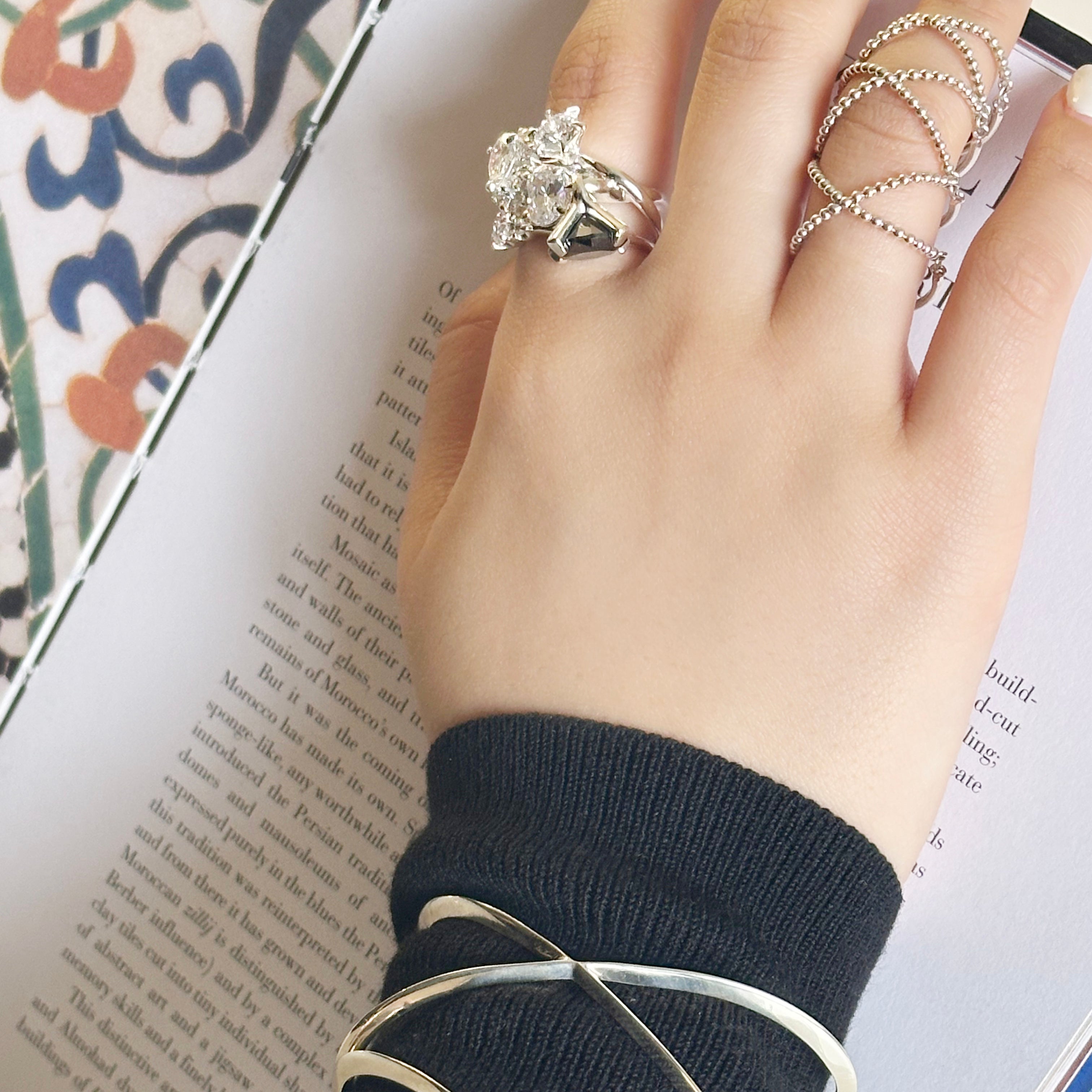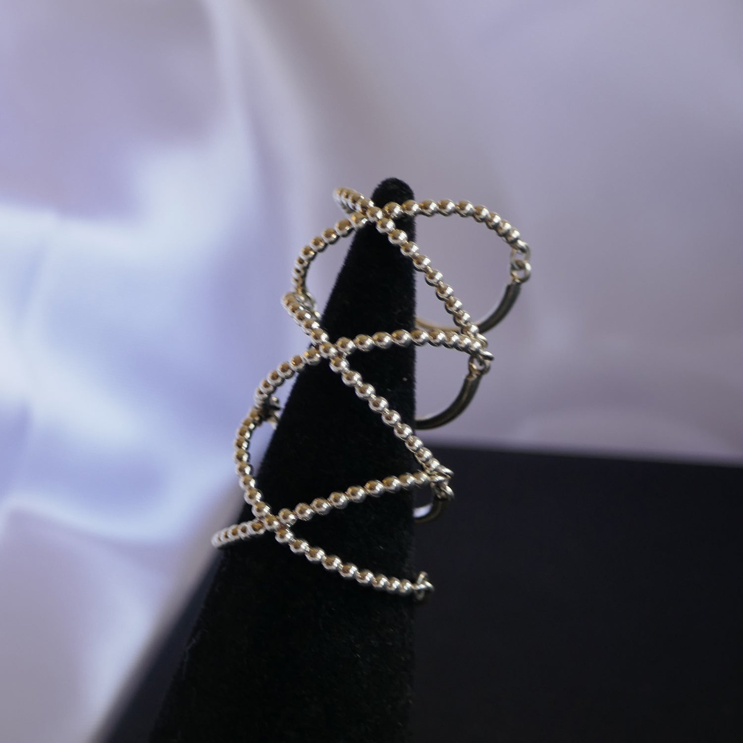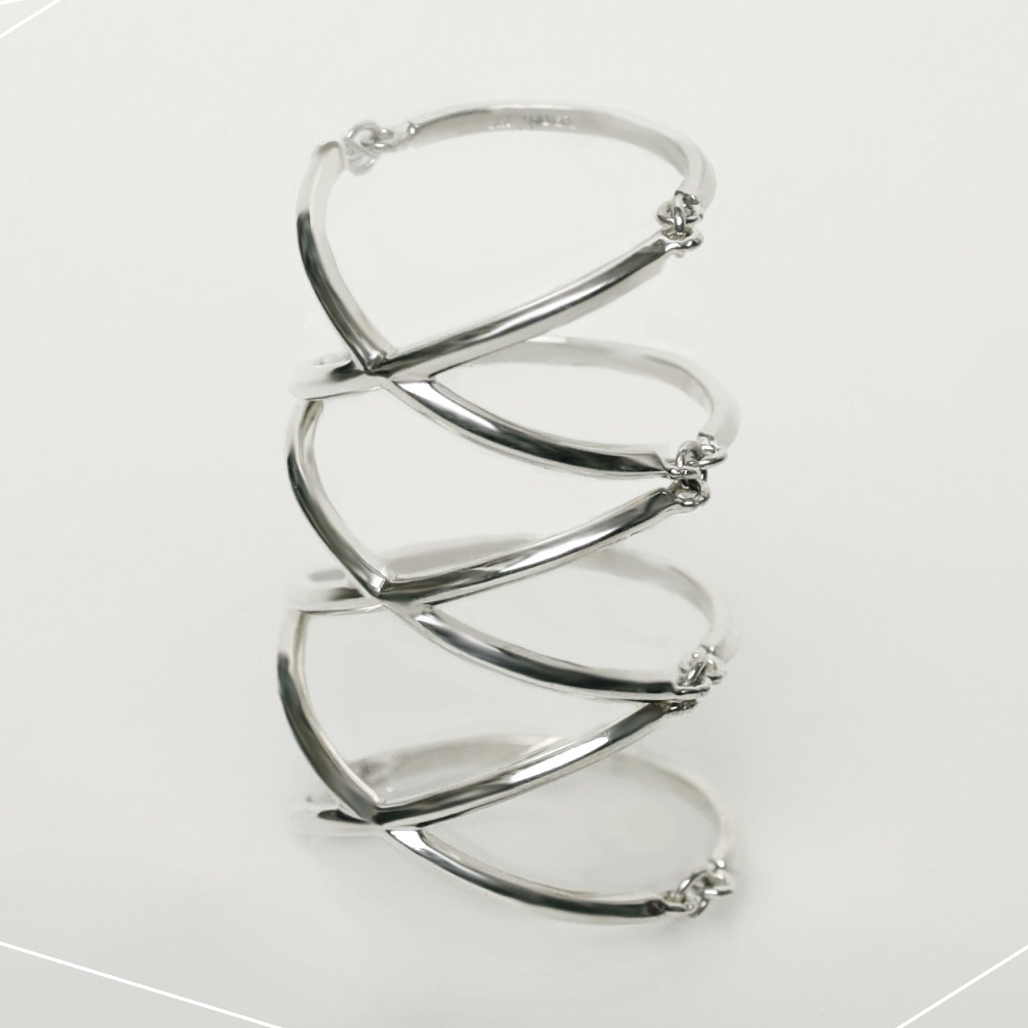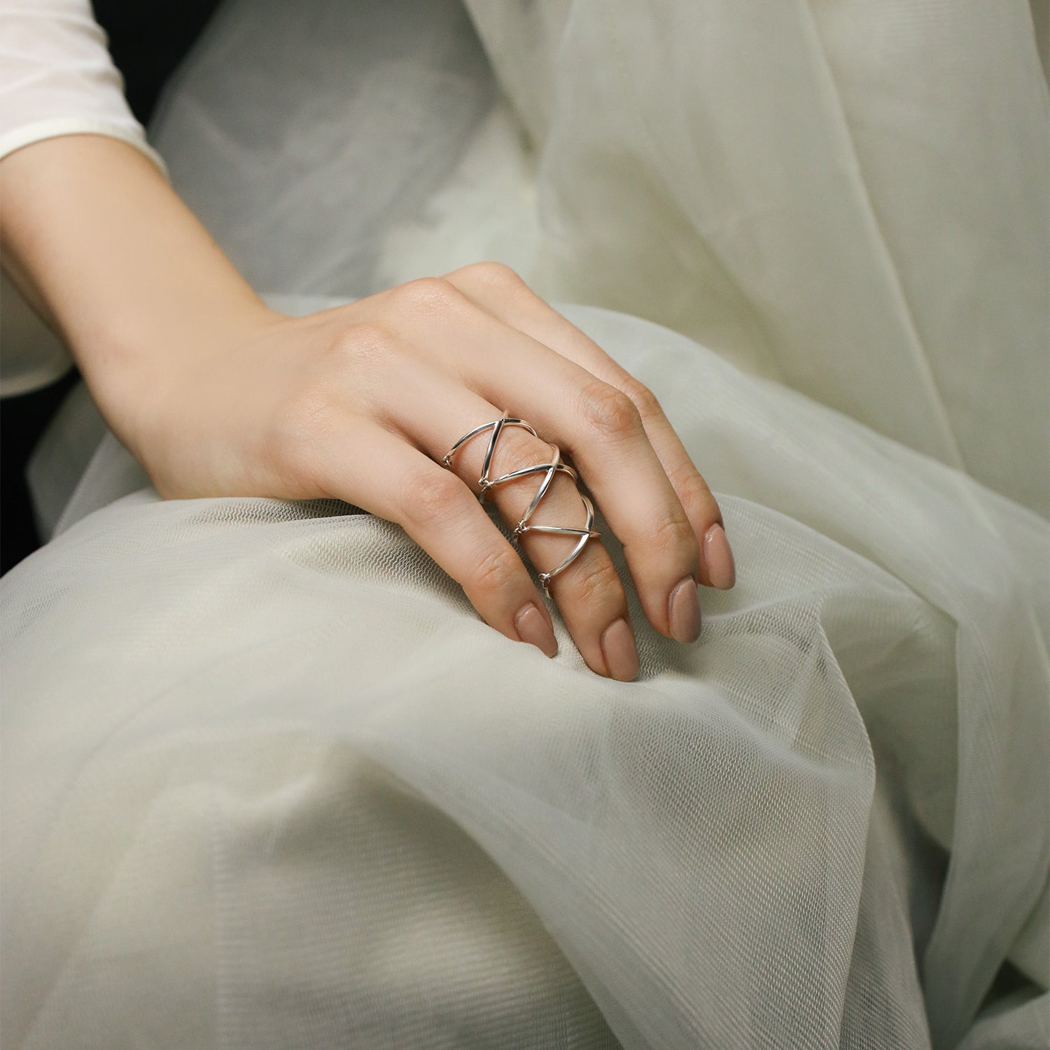 従来のアーマーリングが持つハード、無骨というイメージを覆す唯一無二のデザインです。