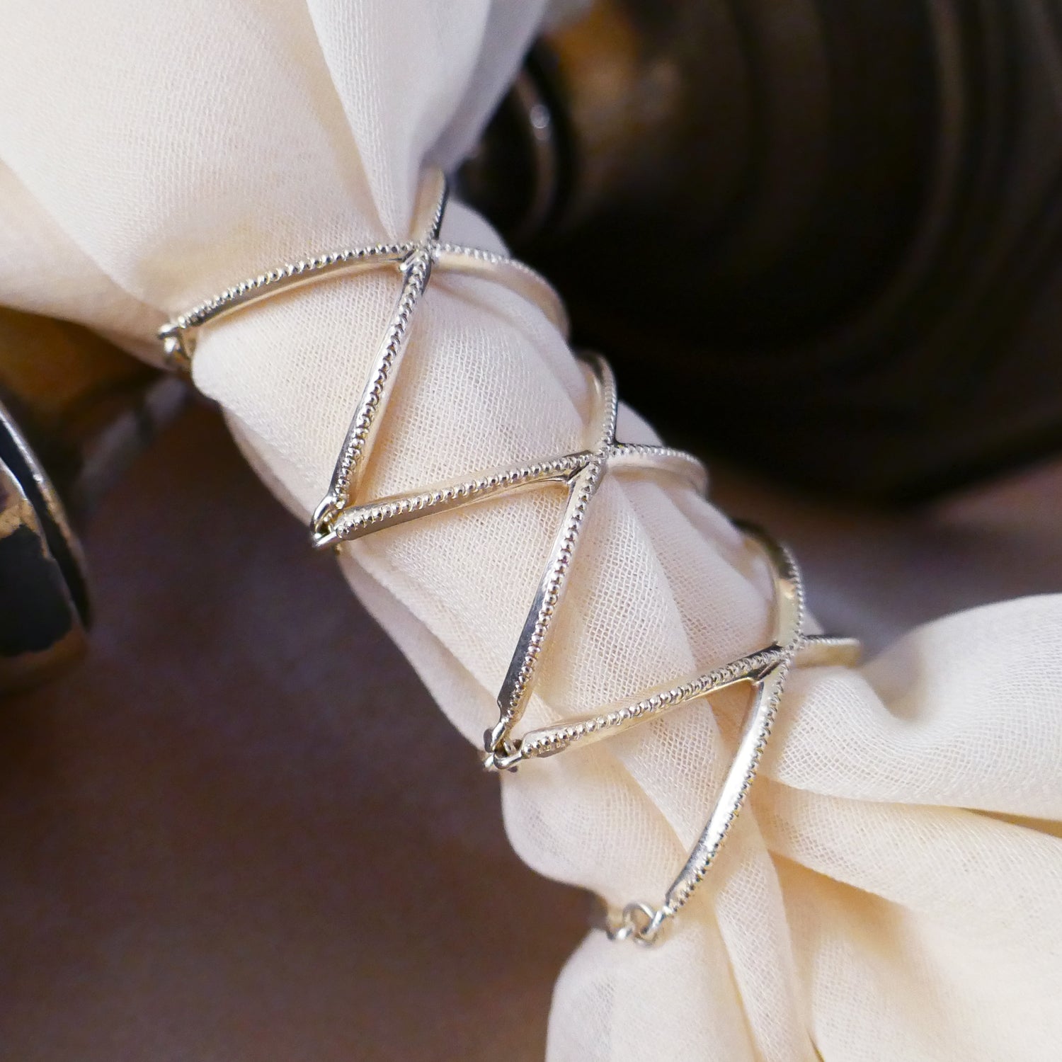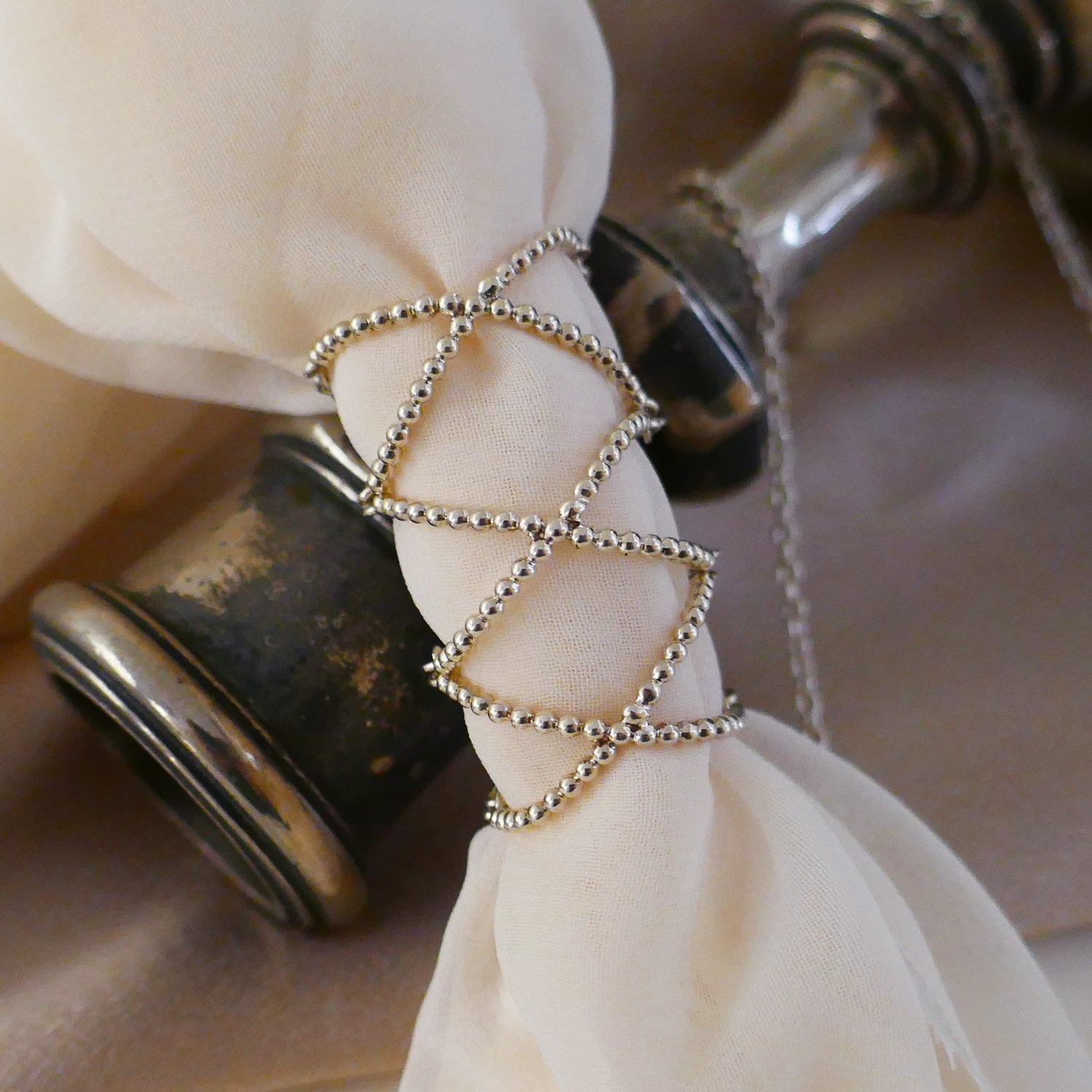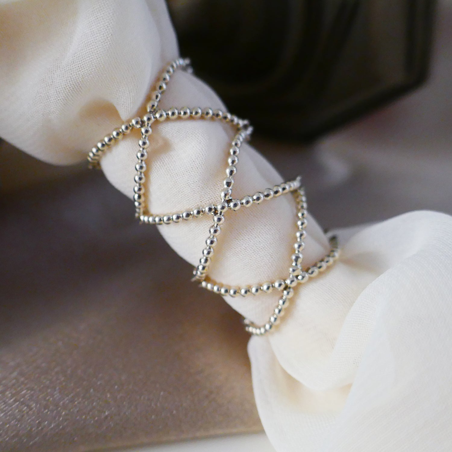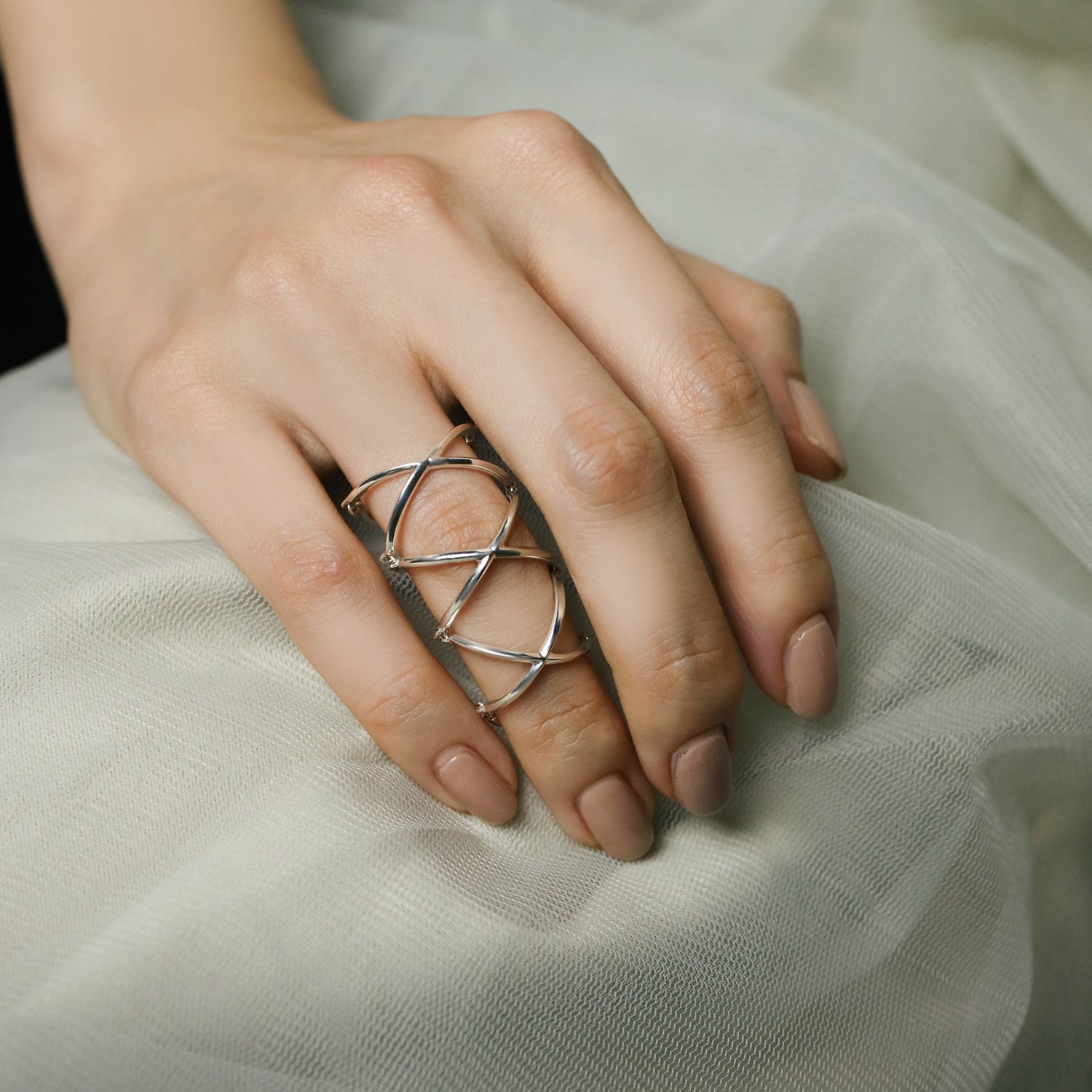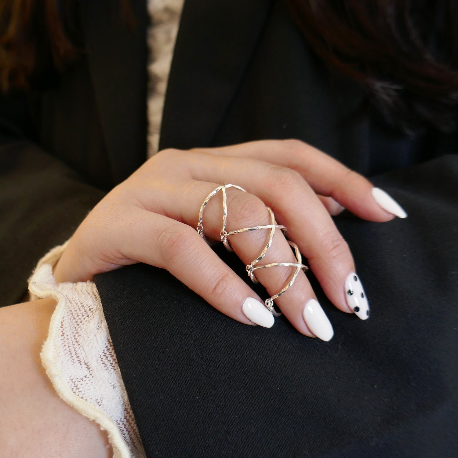 従来のアーマーリングが持つハード、無骨というイメージを覆す唯一無二のデザインです。