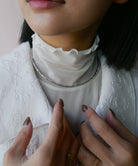 シンプルなチェーンネックレスとの重ね付けもおすすめ。