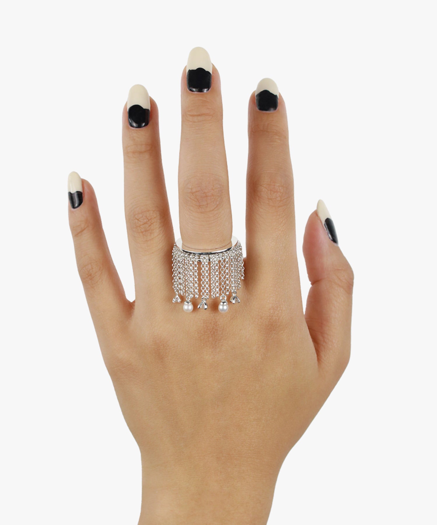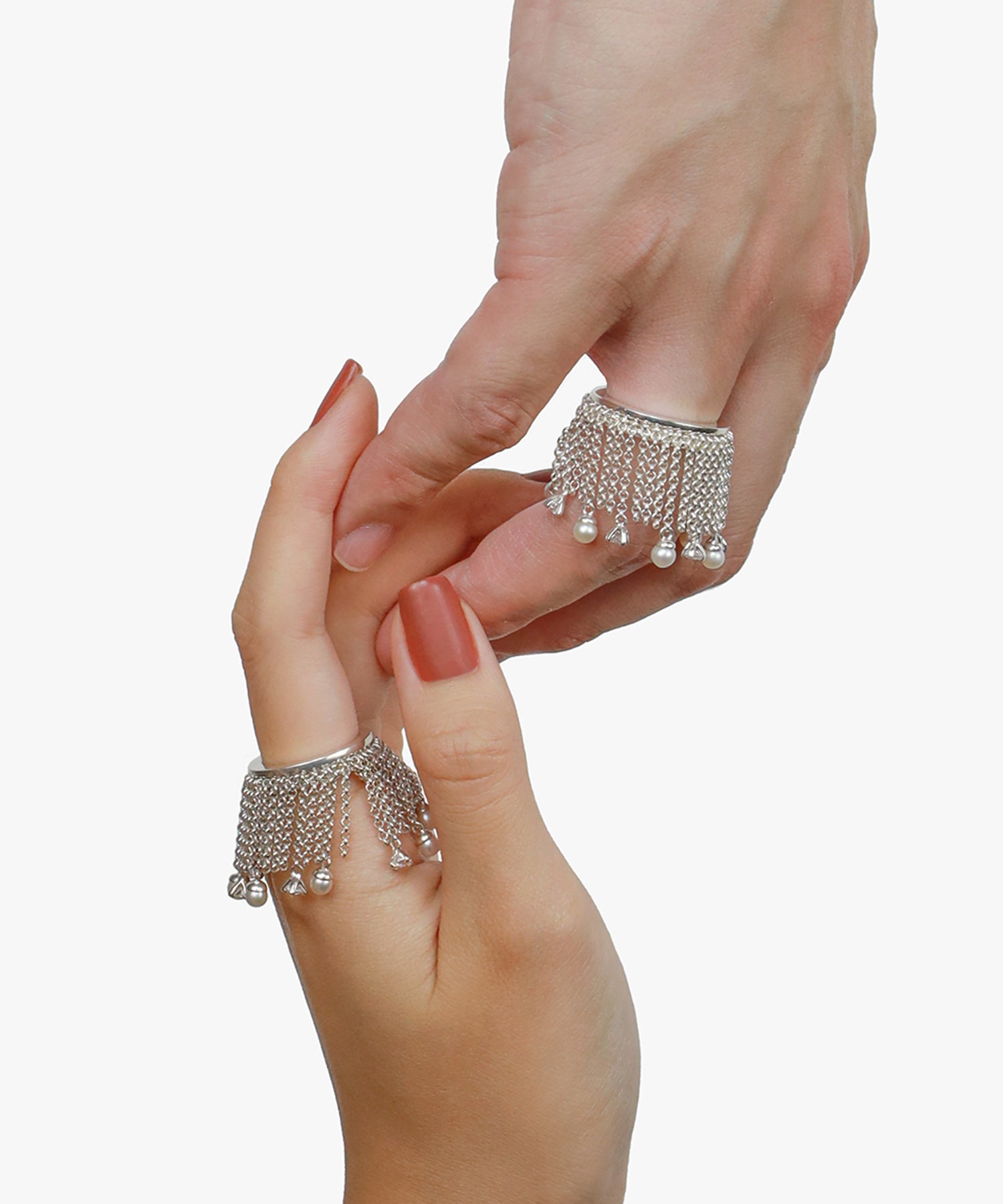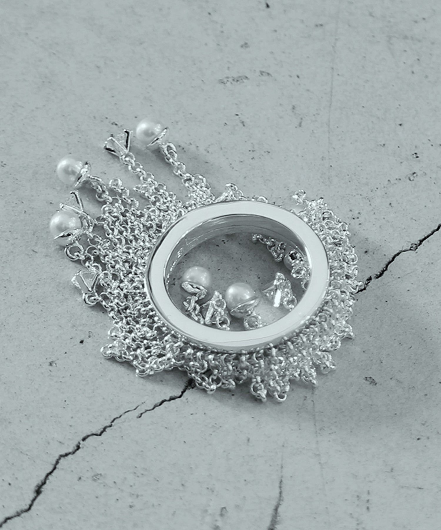 フリンジのように揺れるチェーンの先に