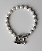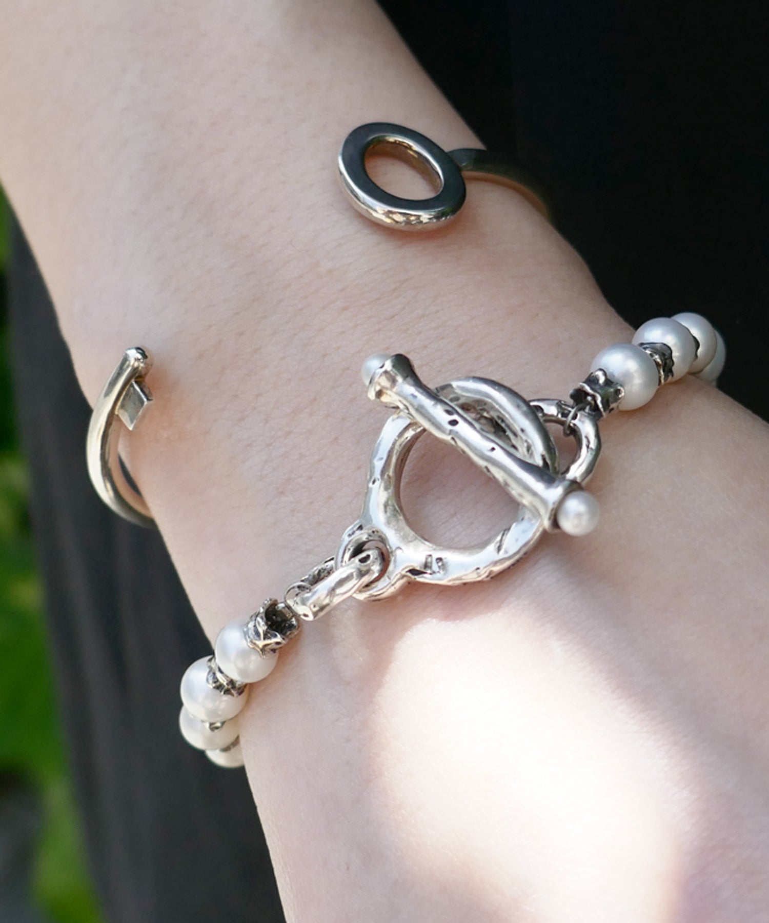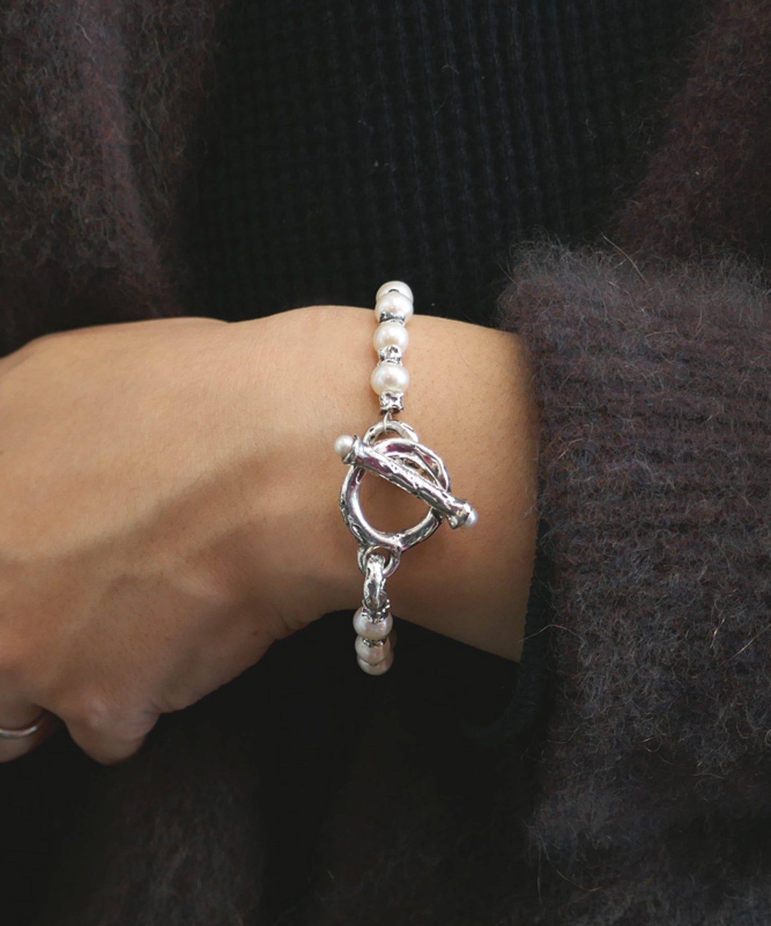 淡水パールを繋ぎ合わせたシルバーのブレスレット。