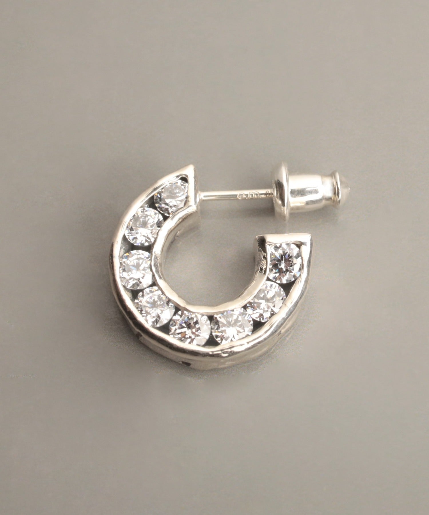 フープのピアスの両側面にキュービックジルコニアを敷き詰めたインパクトフルなデザイン。