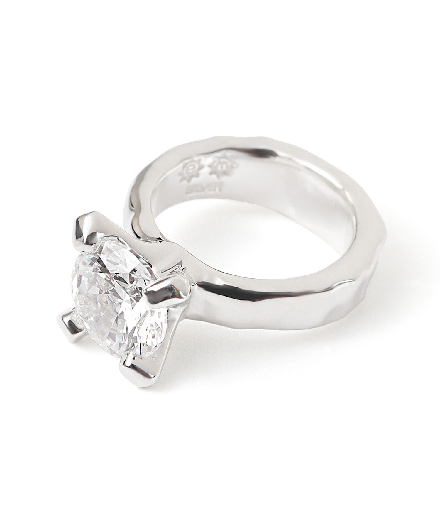 さらにアーム部分にボリュームを持たせることで、ソリティアのエレガントさとシルバーの無骨さの2つの要素がバランス良く合わさったデザインです。
