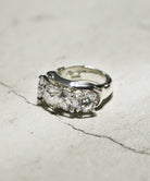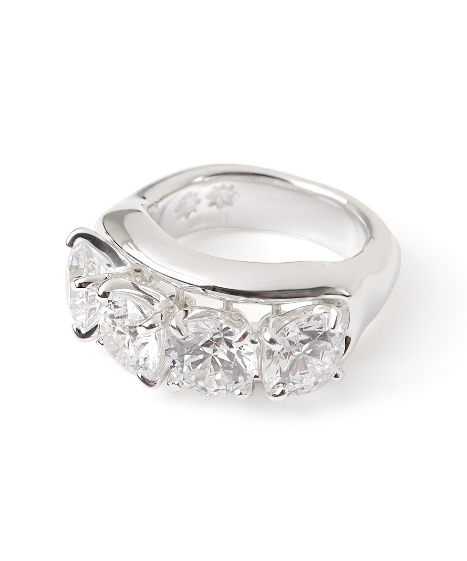 デザインの主役であるトップに並べられた4石のキュービックジルコニアは、横にカタカタと揺れる仕組み。