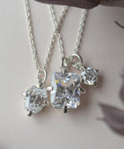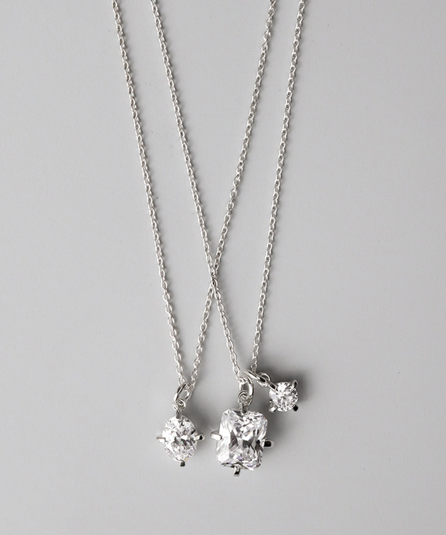ぞれぞれ形の違うキュービックジルコニアがセッティングされた2連ネックレス。
