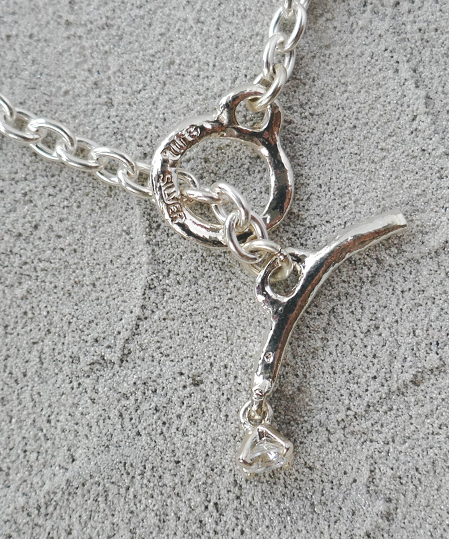 留め具のバーにも揺れる小さなジルコニアが、