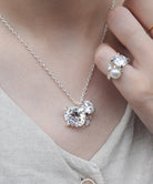 14mmの大粒のキュービックジルコニアを主役に、3石を寄せ合わせてセッティングしたシルバーネックレス。