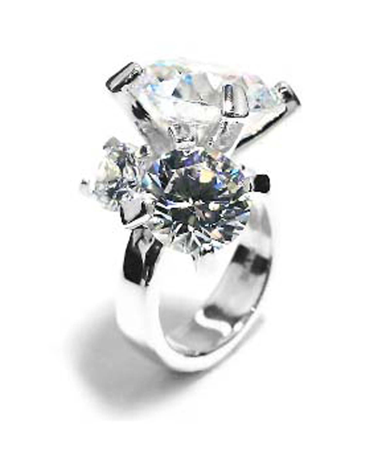 14mmの大粒のキュービックジルコニアを主役に、3石を寄せ合わせてセッティングしたシルバーリング。