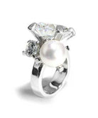 14mmの大粒のキュービックジルコニアを主役に、ナチュラルカラーのパールを寄せ合わせてセッティングしたシルバーリング。