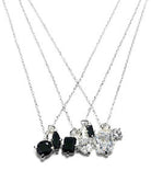 ブラックとクリア、2色のキュービックジルコニアが7石揺れる3連のネックレス。