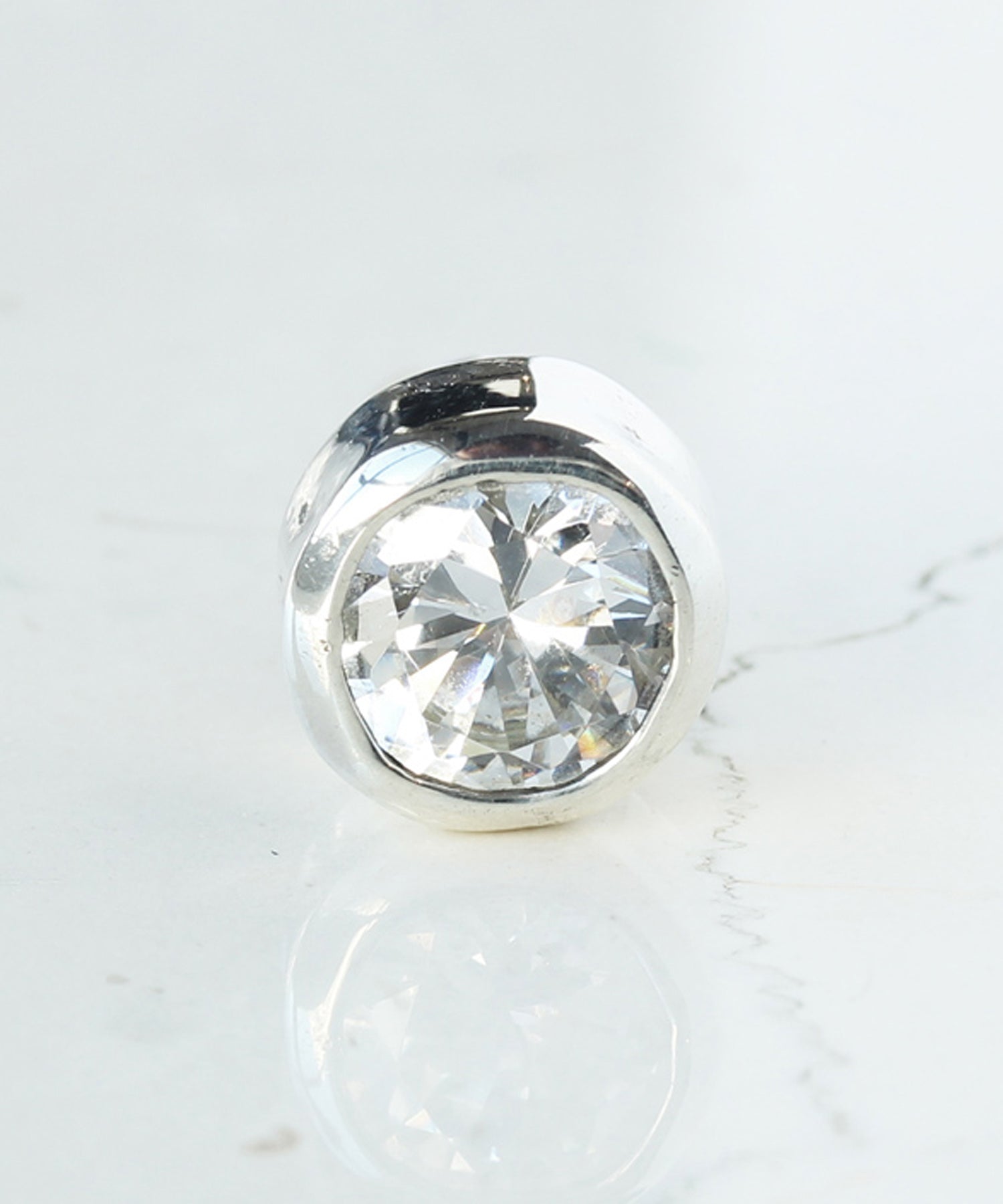 周りをシルバーで囲んだキュービックジルコニアのシンプルなピアス。