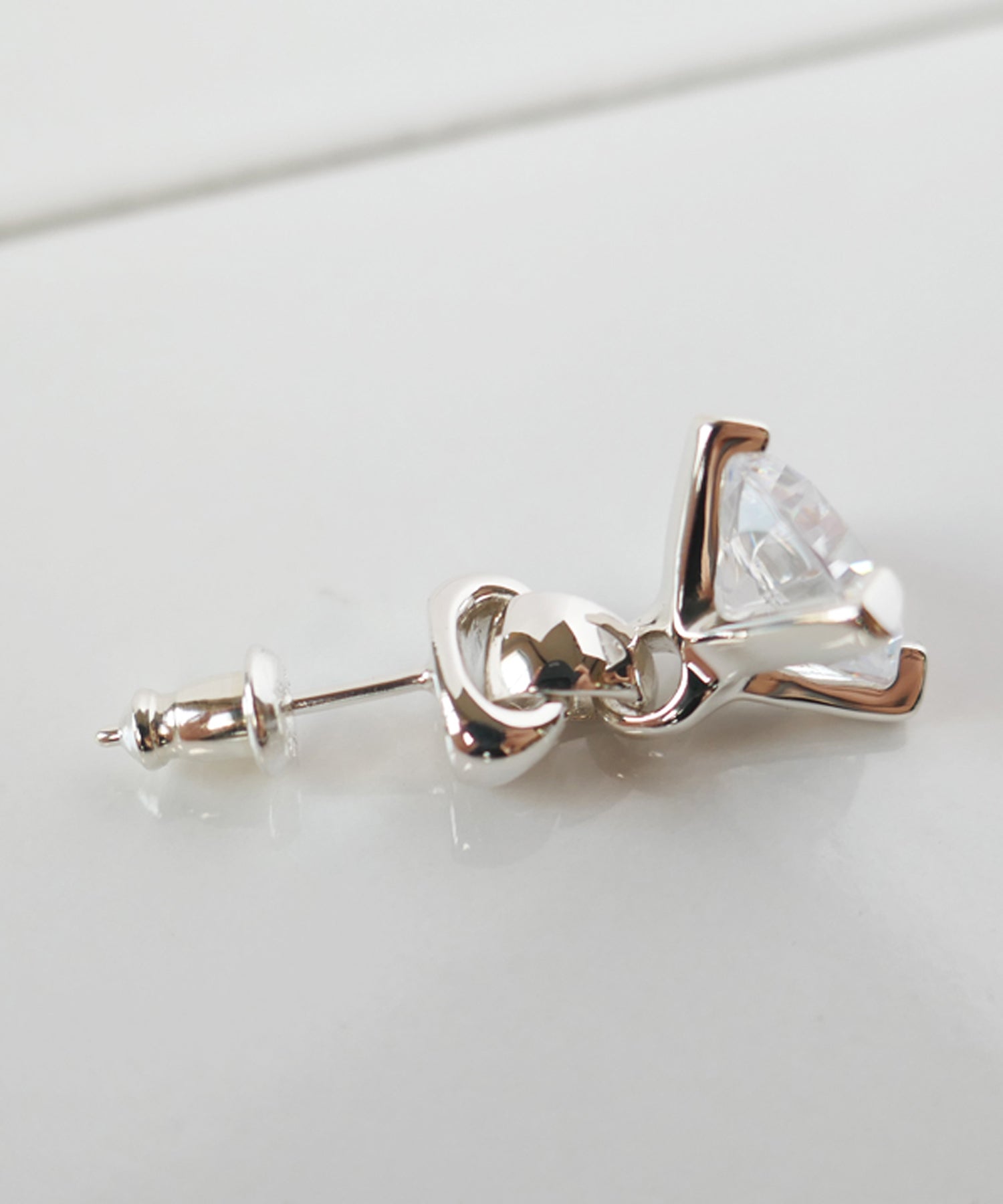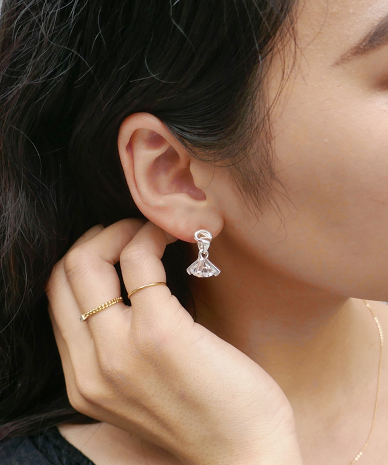 e.m.ではおなじみのジルコニアが1粒揺れるピアスです。